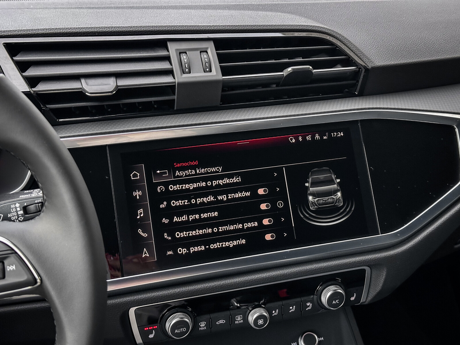 • Audi side assist (system ostrzegający przy zmianie pasa ruchu)