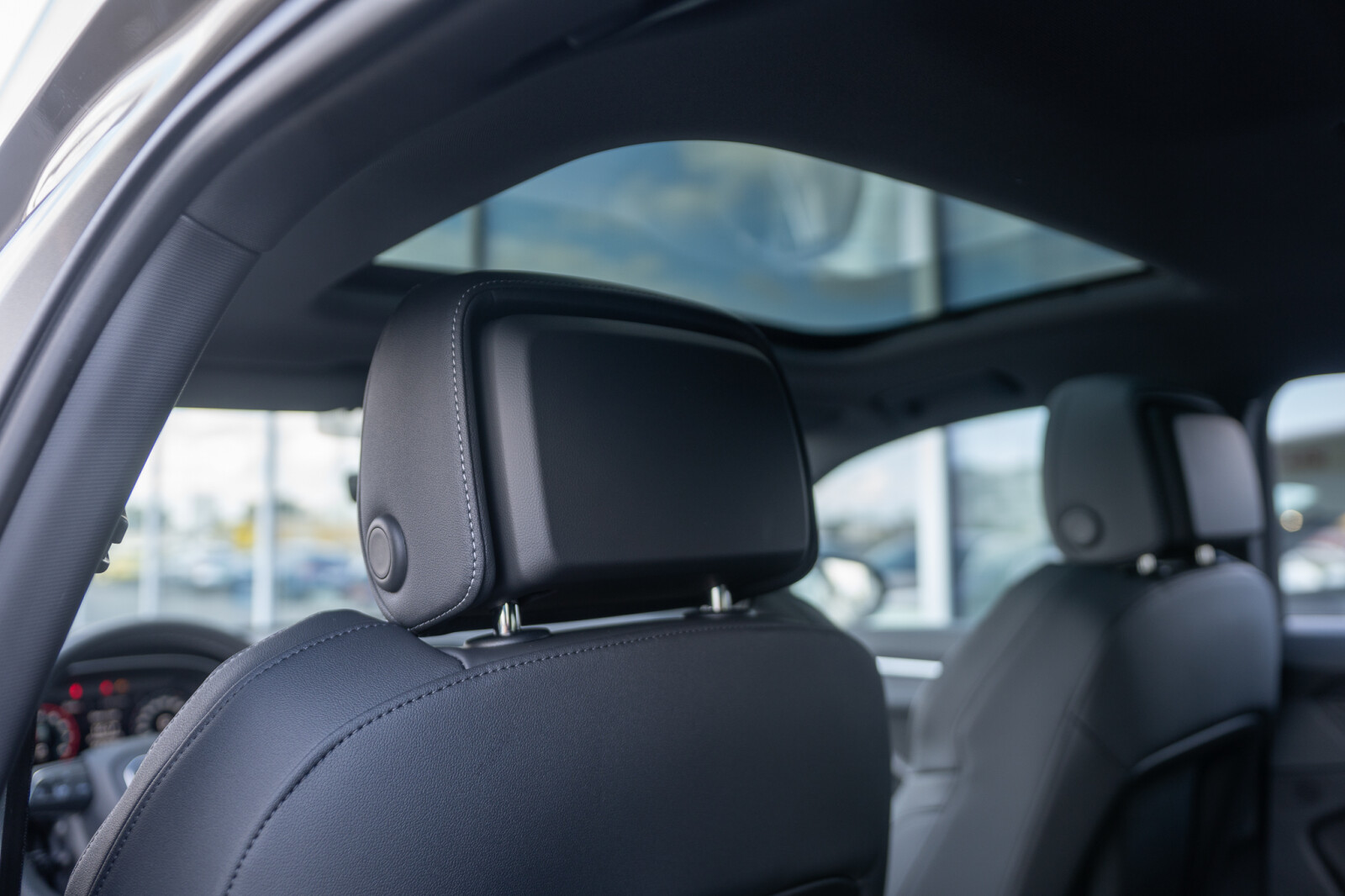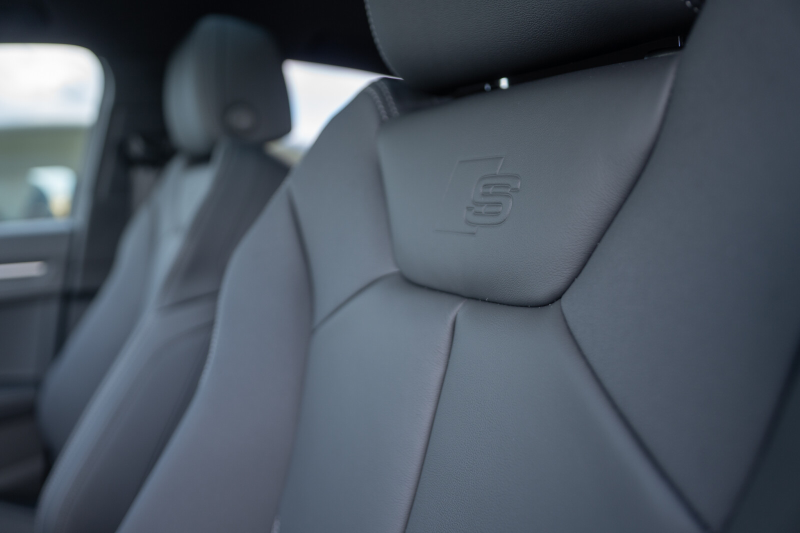 • Sportowe siedzenia z tapicerką z tkaniny Puls/skóry ekologicznej mono.pur 550 i z logo S line na oparciach przednich siedzeń