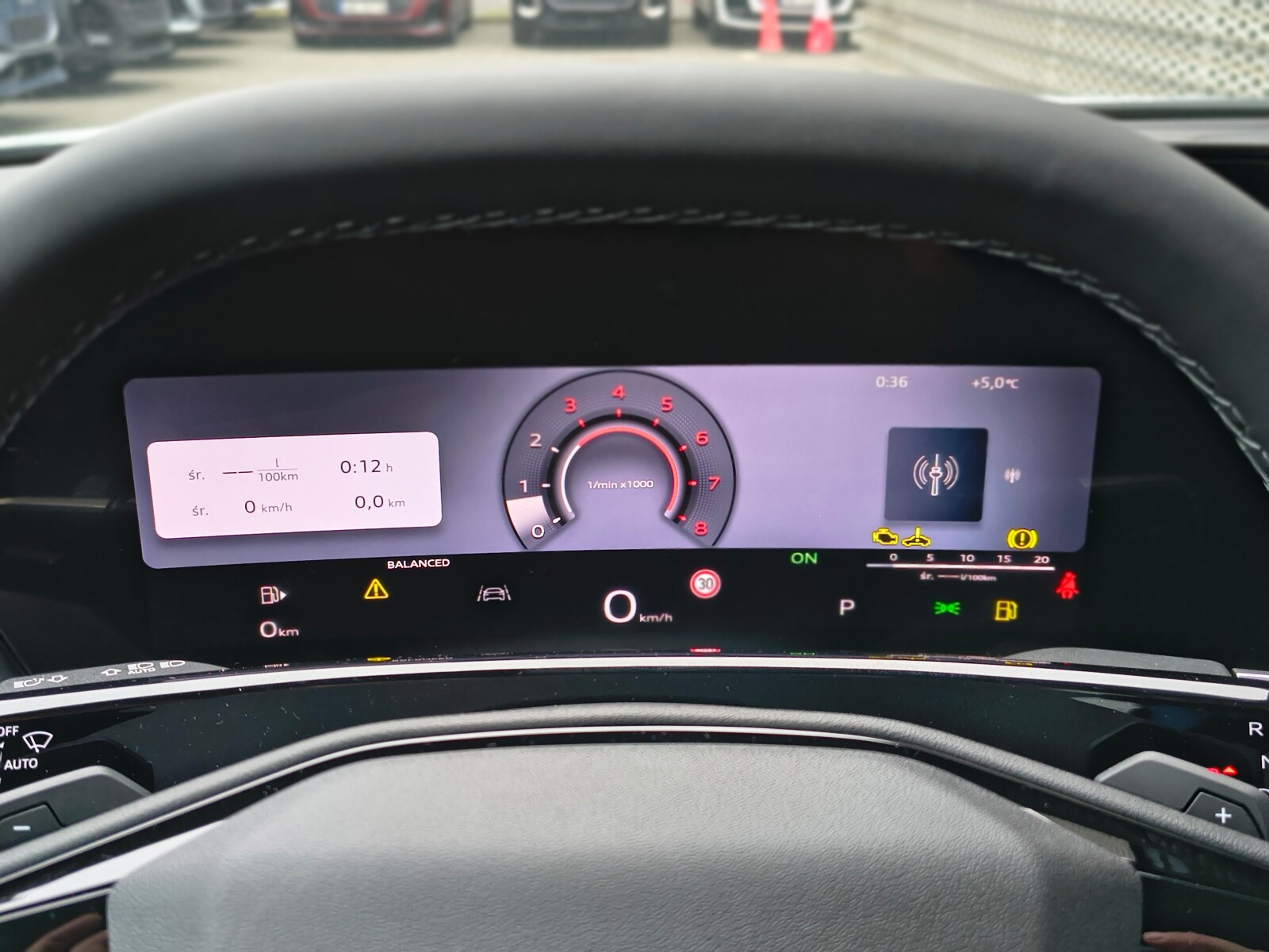 – Kierownica sportowa, 3-ramienna, spłaszczona u dołu i na górze, wielofunkcyjna, z przełącznikami zmiany przełożenia, obszyta skórą