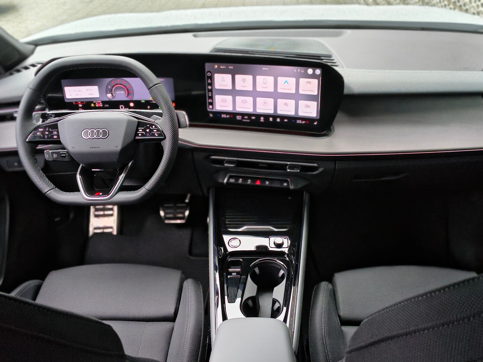 – Pakiet S line Interieur z siedzeniami sportowymi, kombinacja tkanina/mikrofibra w kolorze czarnym