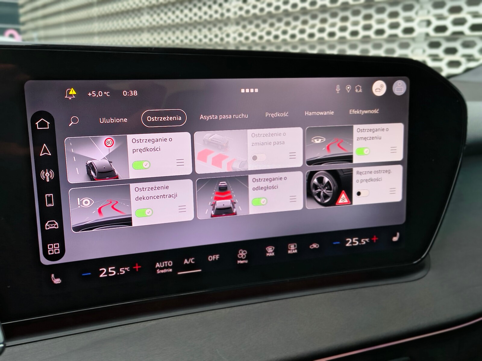• system ostrzegający przy zmianie pasa ruchu z systemem ostrzegającym przy wysiadaniu i asystentem ruchu poprzecznego z tyłu