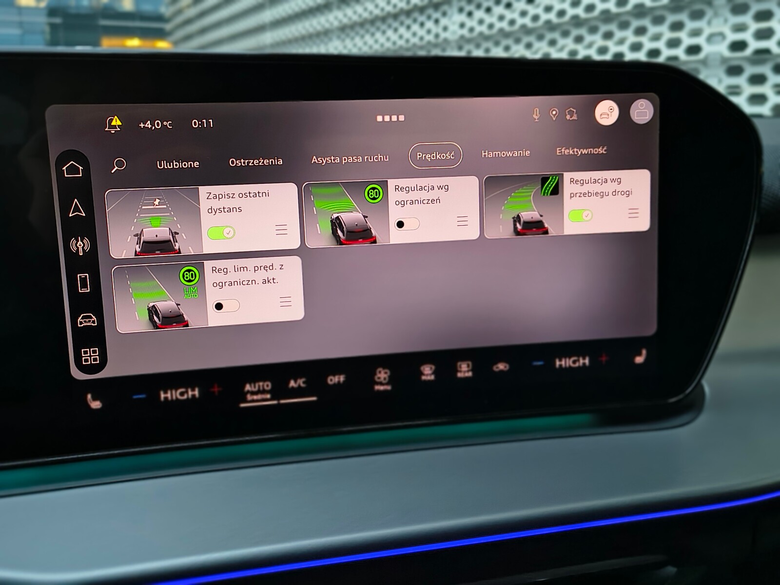 • adaptacyjny asystent prędkości z funkcją predykcyjnej regulacji prędkości