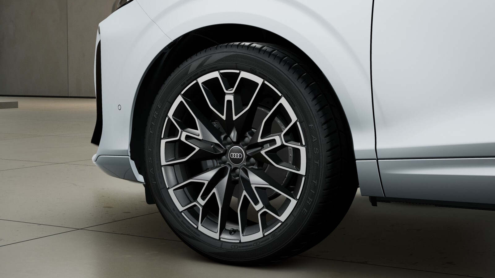 – Obręcze kół ze stopu metali lekkich Audi Sport 8.5Jx20″, 5 – ramienne, kontrastowo-czarne matowe, polerowane, z oponami 255/40 R 20. 3-letnie ubezpieczenie opon w cenie.