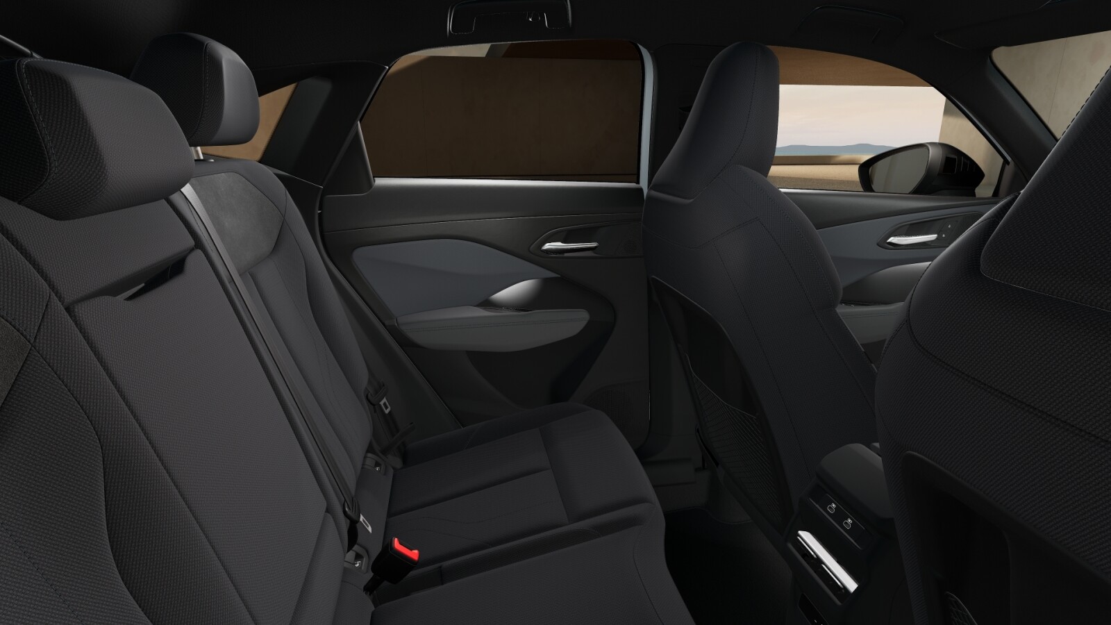 • środkowe części siedzeń, wewnętrzne części boków siedzeń i zagłówki obszyte tkaniną Impressum w kolorze czarnym, górna część oparć siedzeń obszyta czarną mikrofibrą; kontrastowy szew