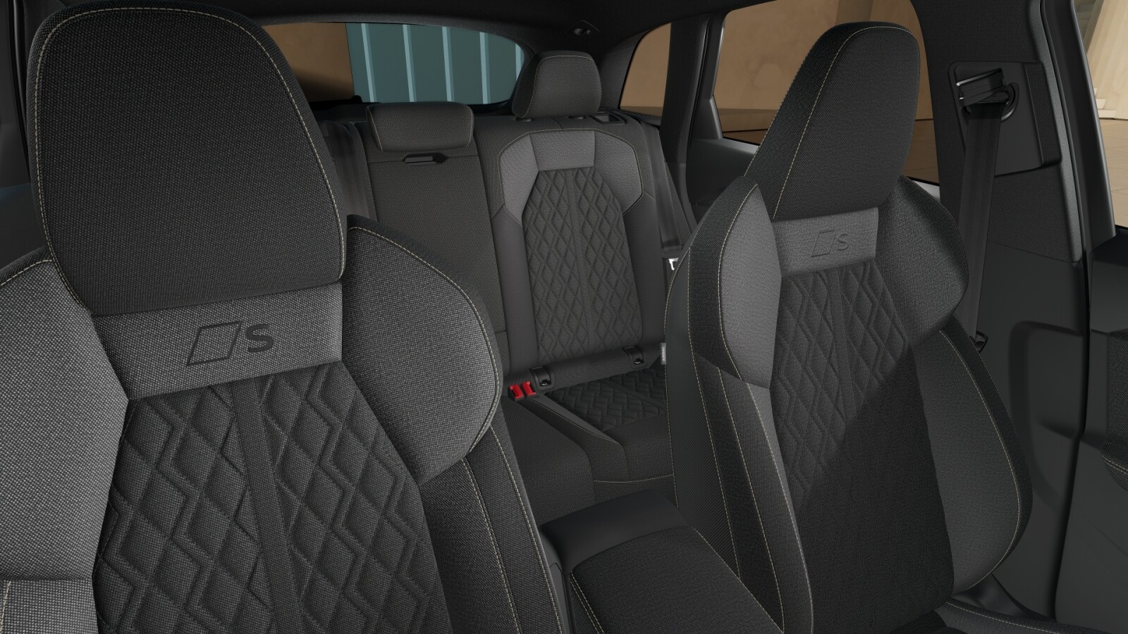 – Pakiet S line Interieur z siedzeniami sportowymi, tkanina w kolorze czarnym