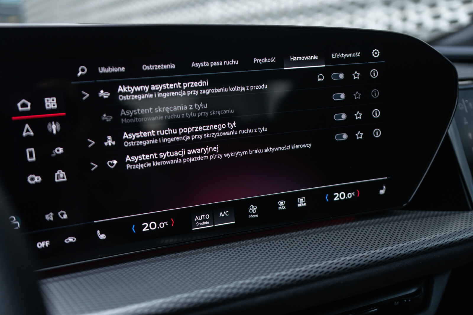 • boczne poduszki powietrzne z przodu i z tyłu z kurtynami chroniącymi głowy i środkowa przednia poduszka między fotelem kierowcy a pasażera