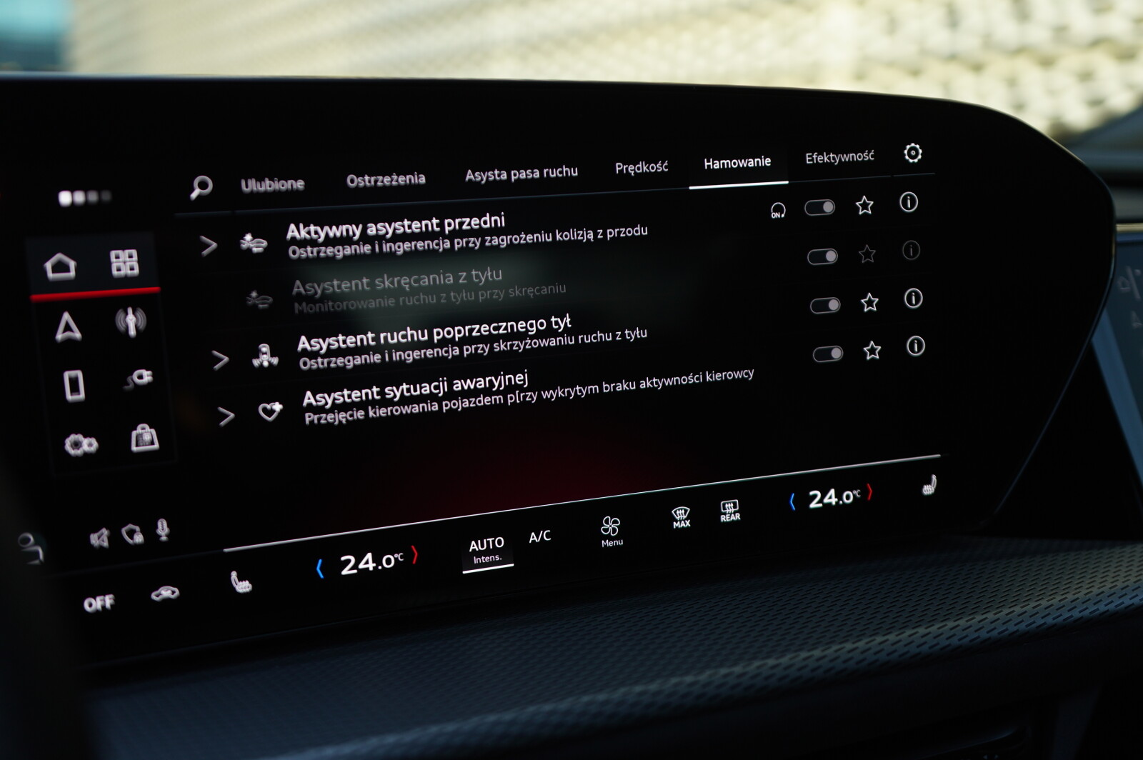 • system ostrzegający przy zmianie pasa ruchu i wysiadaniu, asystent ruchu poprzecznego z tyłu i tylny asystent skrętu
