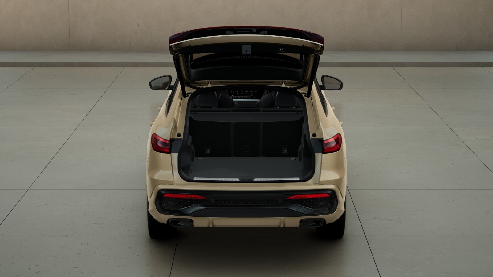 • środkowe części siedzeń obszyte czarną mikrofibrą Dinamica¹ z pikowaniem w romby, boki siedzeń obszyte czarną skórą, zagłówki pokryte czarną skórą ekologiczną, wytłoczone logo S na oparciach tylnych siedzeń, kontrastowy szew (tapicerka tylnych siedzeń dopasowana optycznie do siedzeń przednich)
