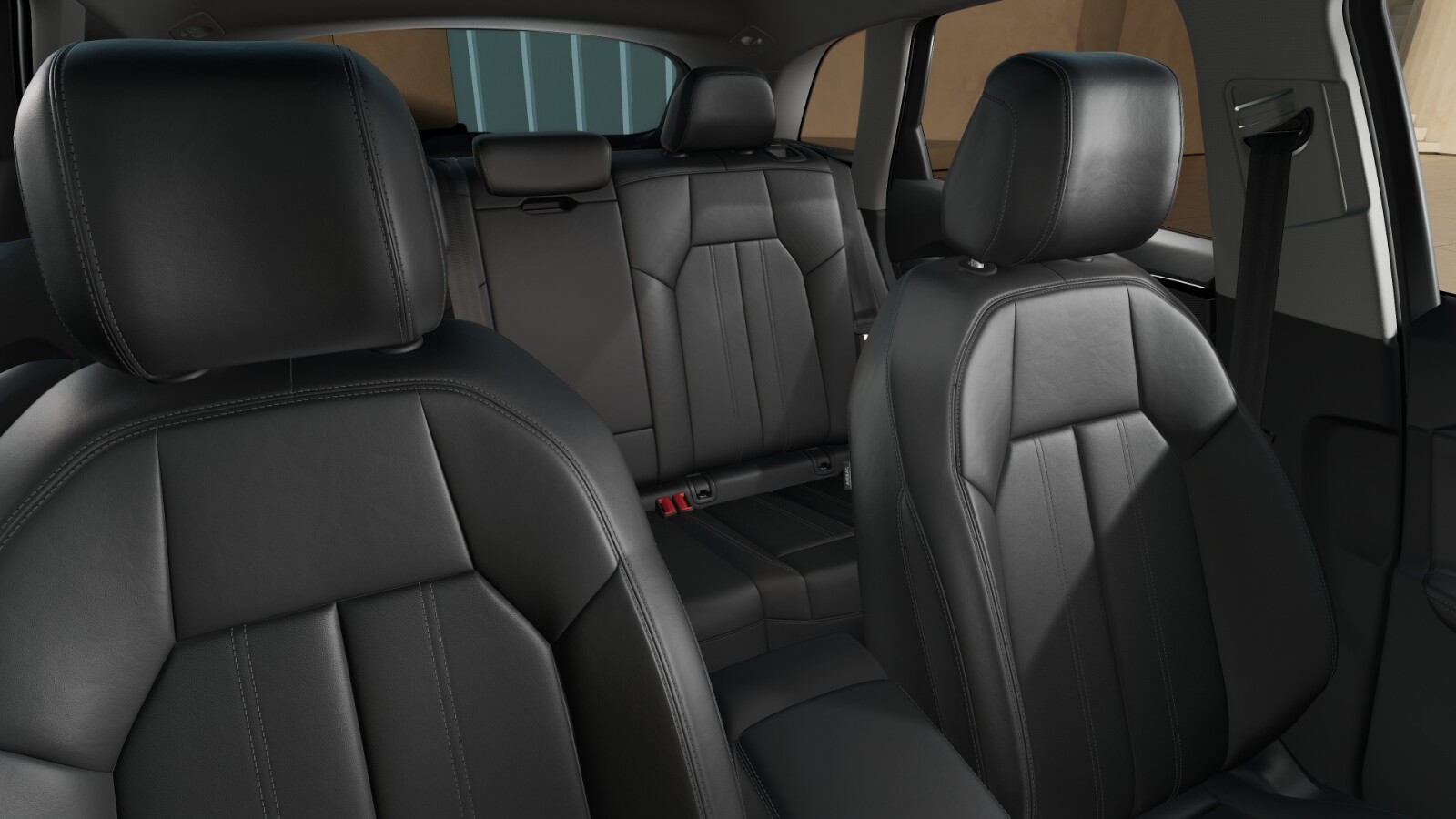 • środkowe części siedzeń obszyte czarną skórą, boki siedzeń i zagłówki obszyte czarną skórą ekologiczną; kontrastowy szew (tapicerka tylnych siedzeń dopasowana optycznie do siedzeń przednich)
