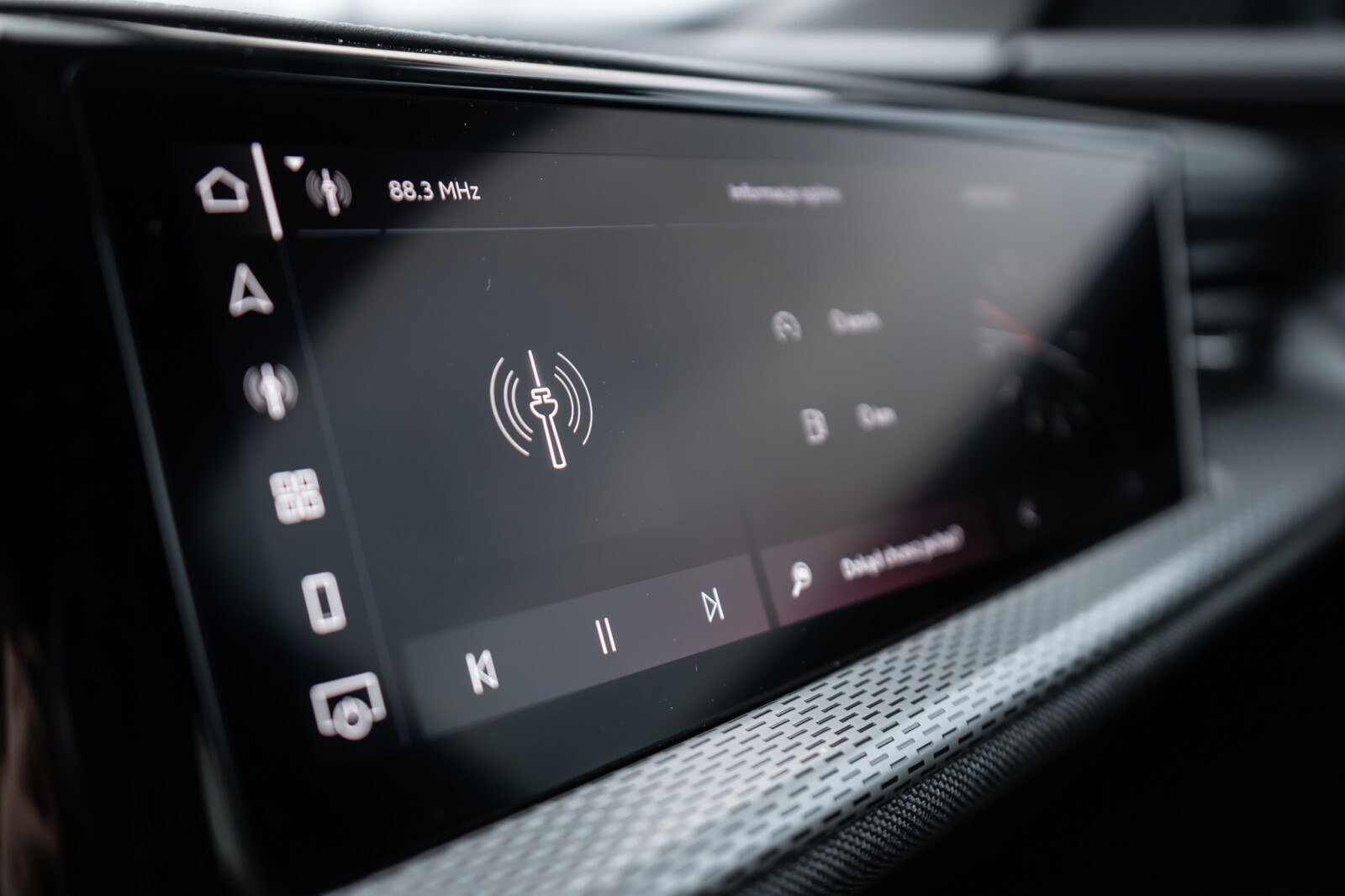 • kontrastowe płaszczyzny i przyciski obsługowe na tablicy rozdzielczej, w poszyciu przednich drzwi i na konsoli środkowej, czarne z połyskiem