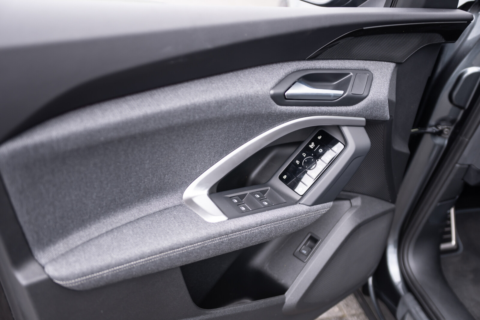 • górne elementy wnętrza pokryte tkaniną Kaskade¹, dolne elementy pokryte skórą ekologiczną: elementy dekoracyjne na tablicy rozdzielczej oraz w drzwiach i podłokietnikach z tkaniny Kaskade¹, kontrastowy szew na podłokietnikach w drzwiach, elementy na wysokości kolan na konsoli środkowej pokryte czarną skórą ekologiczną z kontrastowym szwem