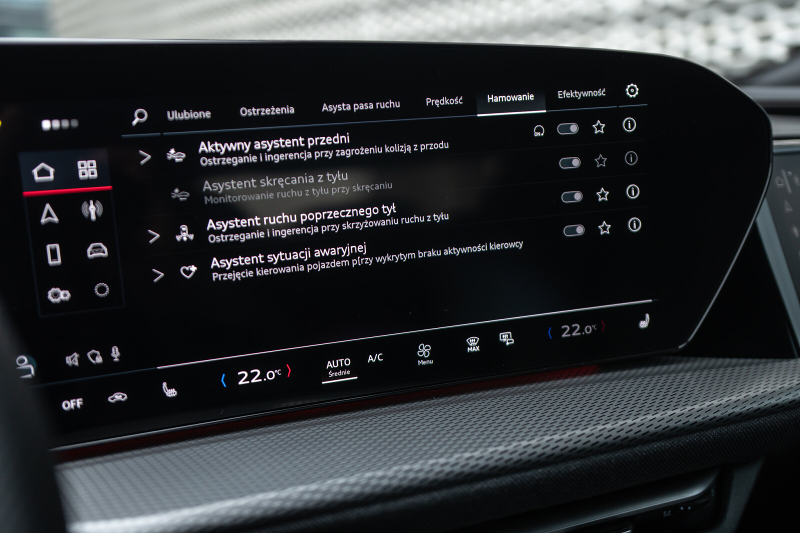 • system ostrzegający przy zmianie pasa ruchu i wysiadaniu, asystent ruchu poprzecznego z tyłu i tylny asystent skrętu