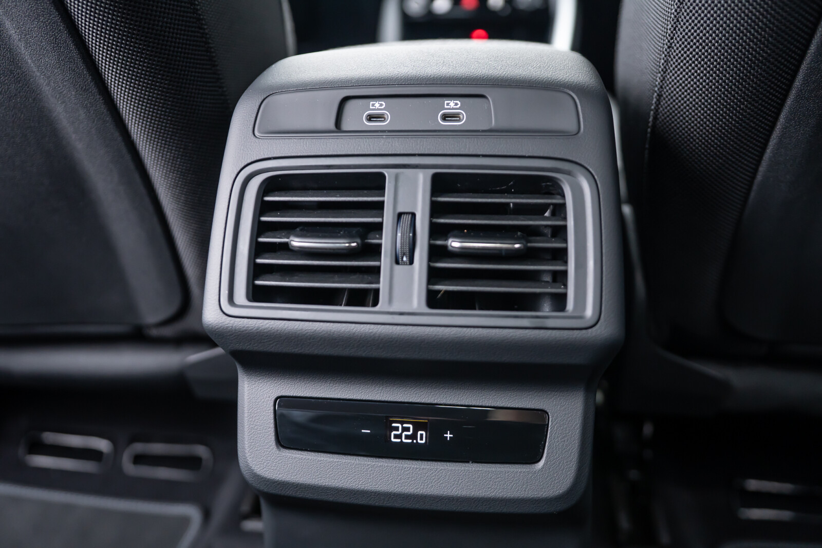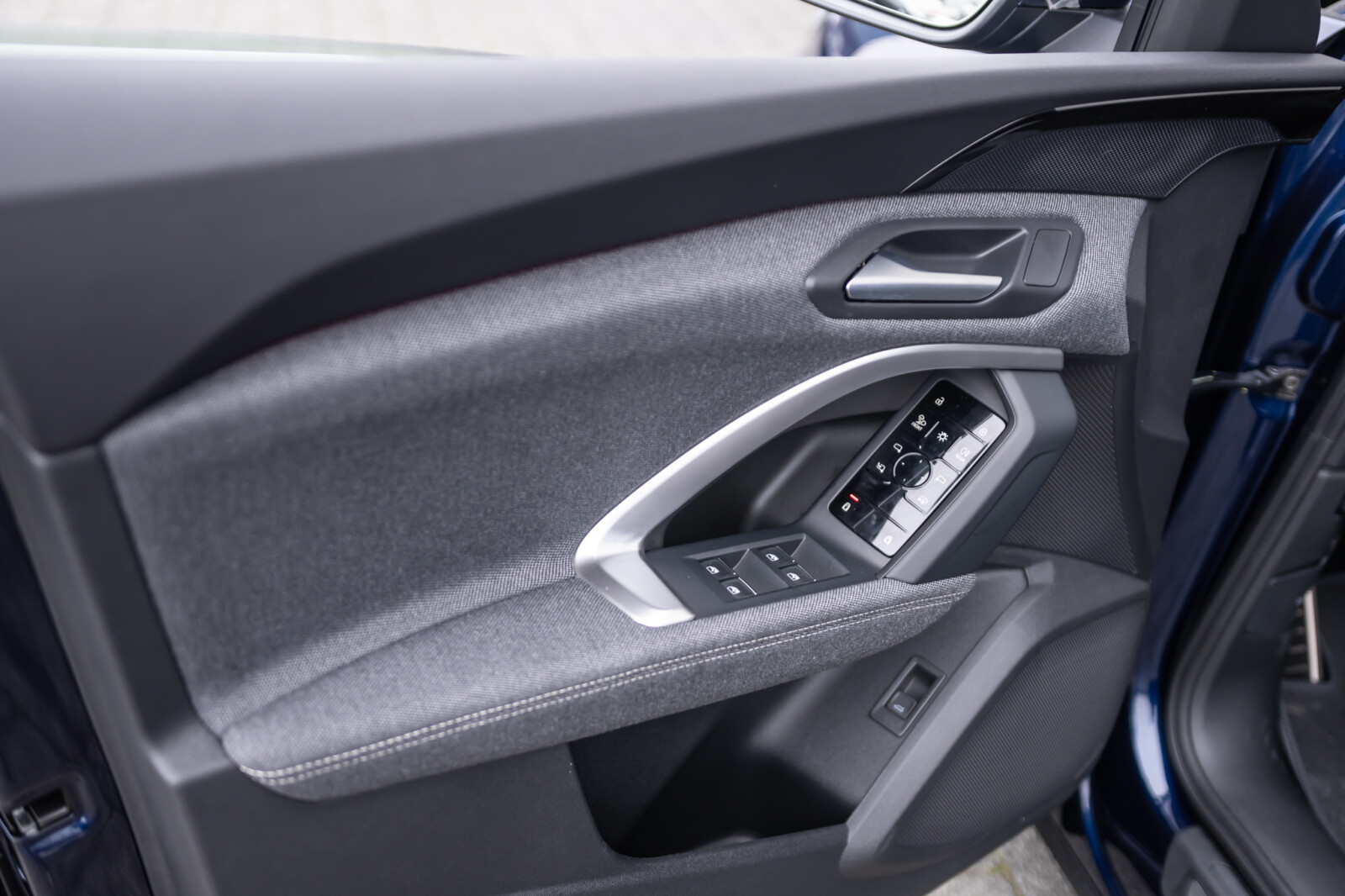 • górne elementy wnętrza pokryte tkaniną Kaskade¹, dolne elementy pokryte skórą ekologiczną: elementy dekoracyjne na tablicy rozdzielczej oraz w drzwiach i podłokietnikach z tkaniny Kaskade¹, kontrastowy szew na podłokietnikach w drzwiach, elementy na wysokości kolan na konsoli środkowej pokryte czarną skórą ekologiczną z kontrastowym szwem