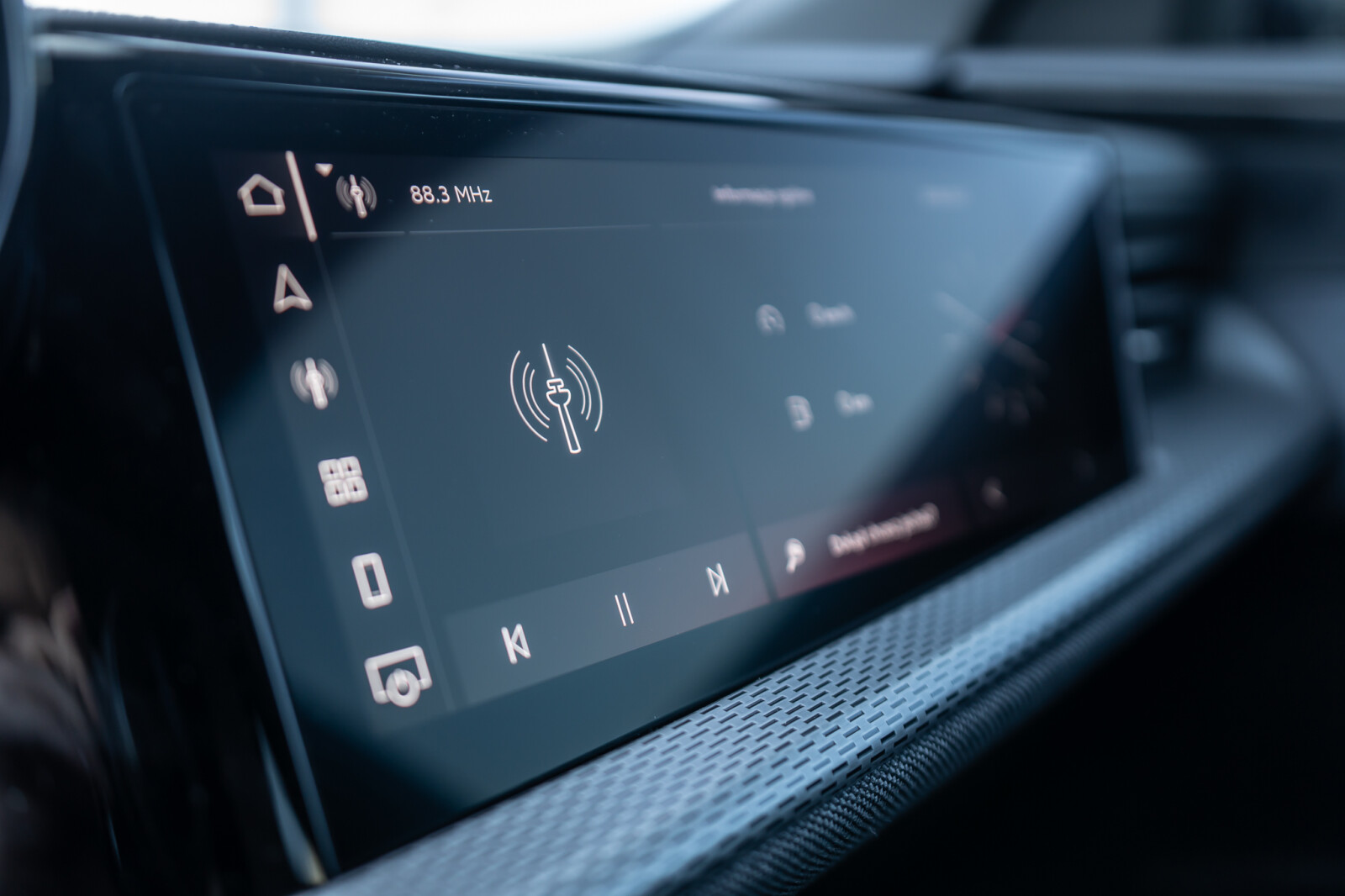 • kontrastowe płaszczyzny i przyciski obsługowe na tablicy rozdzielczej, w poszyciu przednich drzwi i na konsoli środkowej, czarne z połyskiem
