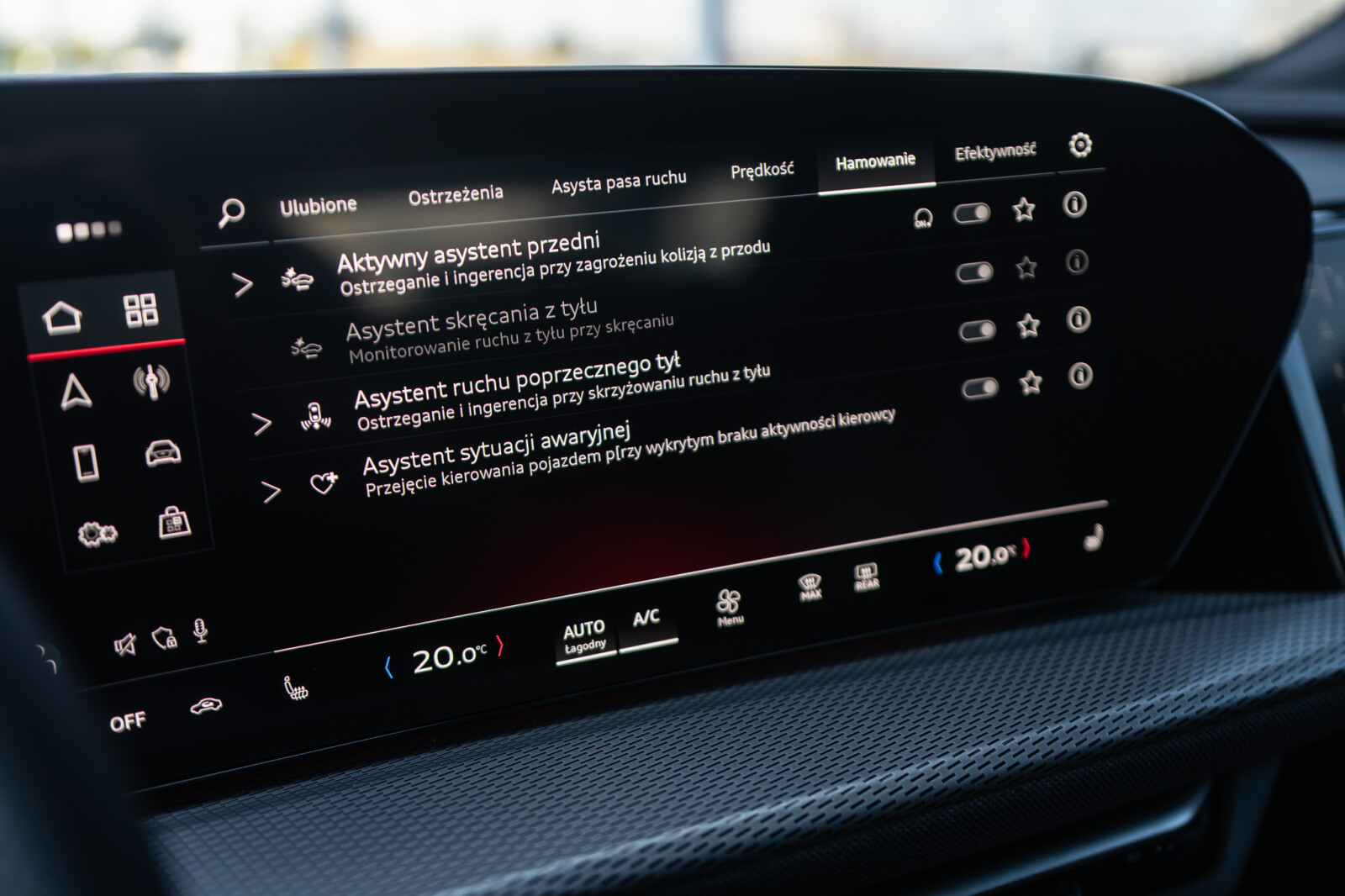• system ostrzegający przy zmianie pasa ruchu i wysiadaniu, asystent ruchu poprzecznego z tyłu i tylny asystent skrętu