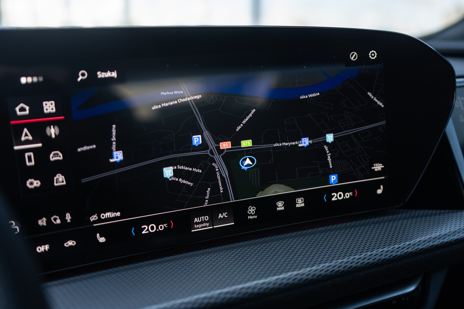 – Obręcze kół ze stopu metali lekkich Audi Sport 8,0Jx20″, 5 – ramienne, z podwójnymi ramionami, czarne metalik, z oponami 255/45 R 20. 3-letnie ubezpieczenie opon w cenie.
