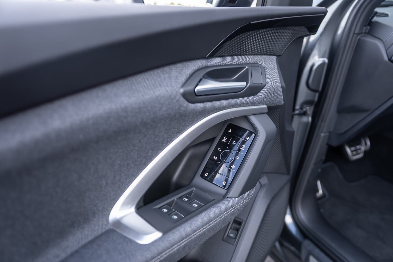 • górne elementy wnętrza pokryte tkaniną Kaskade¹, dolne elementy pokryte skórą ekologiczną: elementy dekoracyjne na tablicy rozdzielczej oraz w drzwiach i podłokietnikach z tkaniny Kaskade¹, kontrastowy szew na podłokietnikach w drzwiach, elementy na wysokości kolan na konsoli środkowej pokryte czarną skórą ekologiczną z kontrastowym szwem