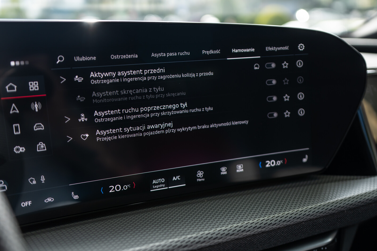 • boczne poduszki powietrzne z przodu i z tyłu z kurtynami chroniącymi głowy i środkowa przednia poduszka między fotelem kierowcy a pasażera