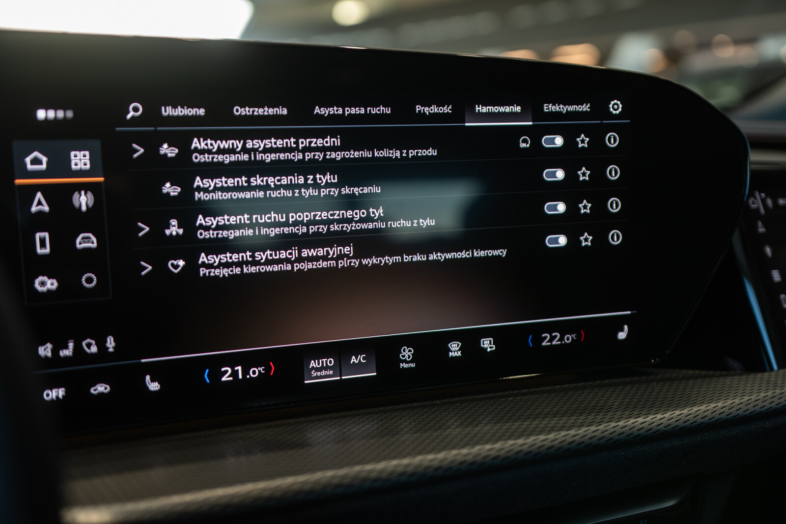 • system ostrzegający przy zmianie pasa ruchu i wysiadaniu, asystent ruchu poprzecznego z tyłu i tylny asystent skrętu