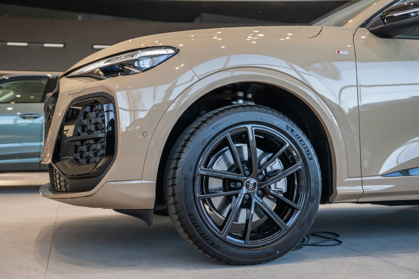 – Obręcze kół ze stopu metali lekkich Audi Sport 8,0Jx20″, 5 – ramienne, z podwójnymi ramionami, czarne metalik, z oponami 255/45 R 20. 3-letnie ubezpieczenie opon w cenie.