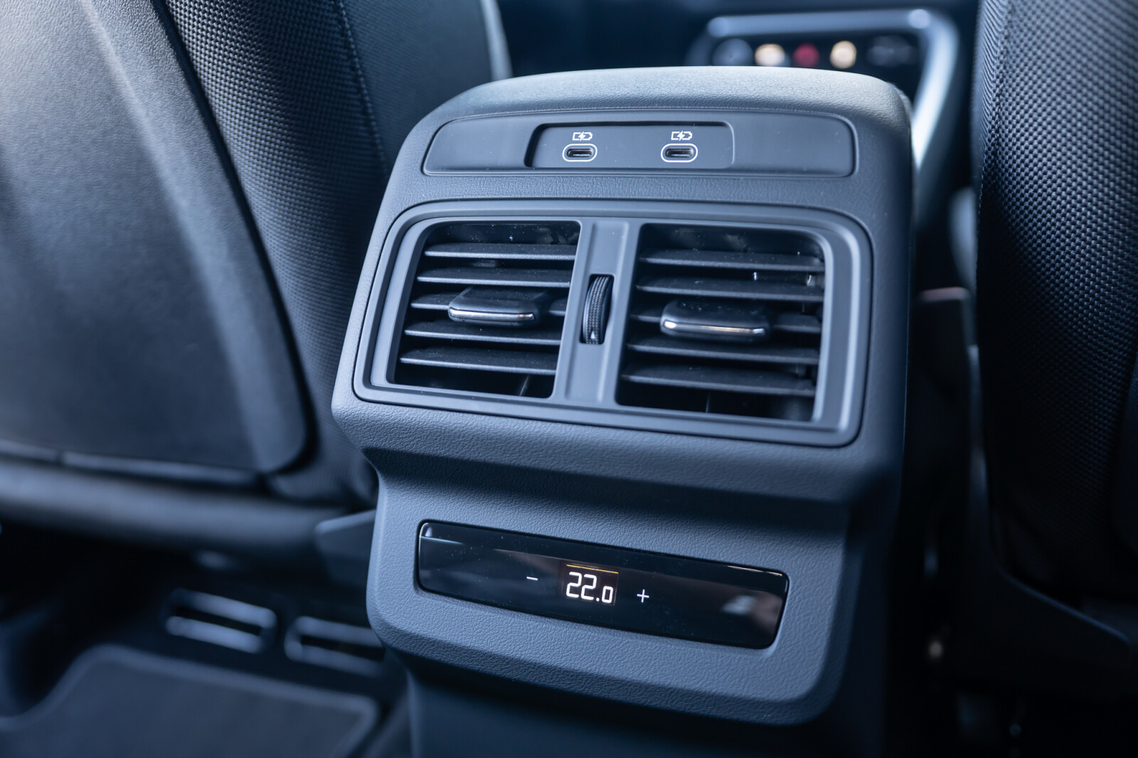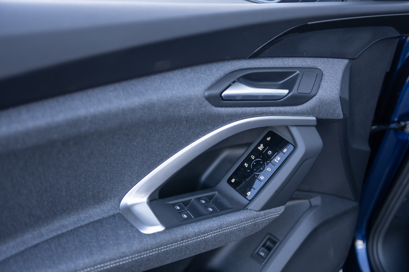 • górne elementy wnętrza pokryte tkaniną Kaskade¹, dolne elementy pokryte skórą ekologiczną: elementy dekoracyjne na tablicy rozdzielczej oraz w drzwiach i podłokietnikach z tkaniny Kaskade¹, kontrastowy szew na podłokietnikach w drzwiach, elementy na wysokości kolan na konsoli środkowej pokryte czarną skórą ekologiczną z kontrastowym szwem