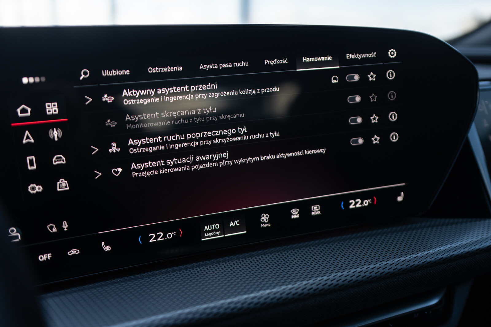 • system ostrzegający przy zmianie pasa ruchu i wysiadaniu, asystent ruchu poprzecznego z tyłu i tylny asystent skrętu
