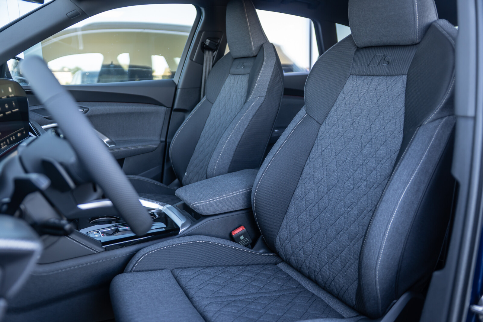 • przednie siedzenia sportowe z manualnie wysuwanym podparciem pod uda, wizualnie zintegrowanymi zagłówkami i wyprofilowanymi bokami, poprawiającymi stabilność na zakrętach