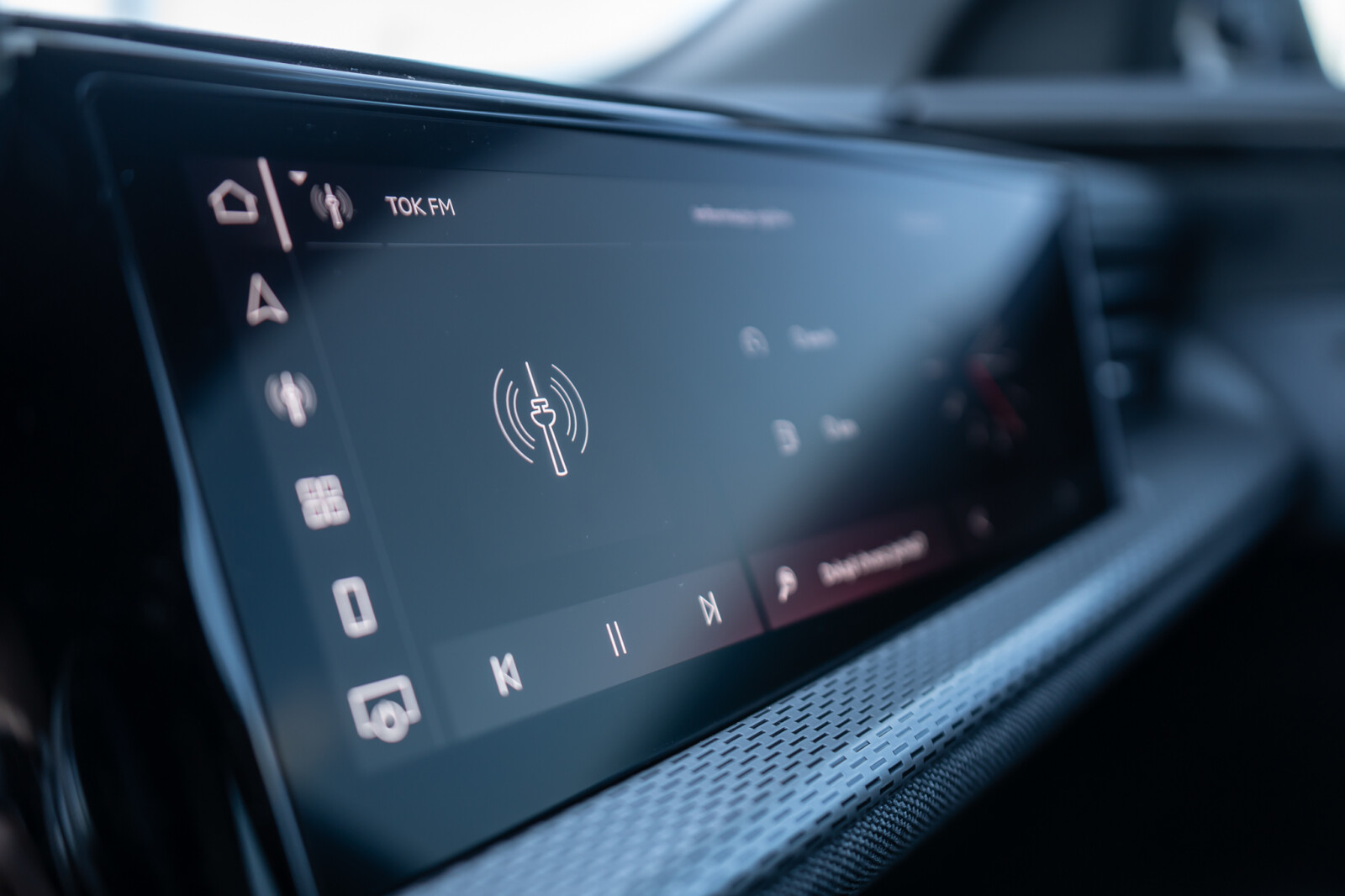 • kontrastowe płaszczyzny i przyciski obsługowe na tablicy rozdzielczej, w poszyciu przednich drzwi i na konsoli środkowej, czarne z połyskiem