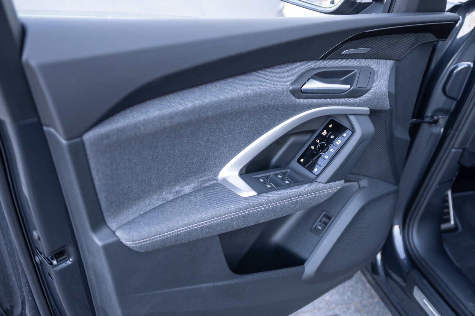 • górne elementy wnętrza pokryte tkaniną Kaskade¹, dolne elementy pokryte skórą ekologiczną: elementy dekoracyjne na tablicy rozdzielczej oraz w drzwiach i podłokietnikach z tkaniny Kaskade¹, kontrastowy szew na podłokietnikach w drzwiach, elementy na wysokości kolan na konsoli środkowej pokryte czarną skórą ekologiczną z kontrastowym szwem