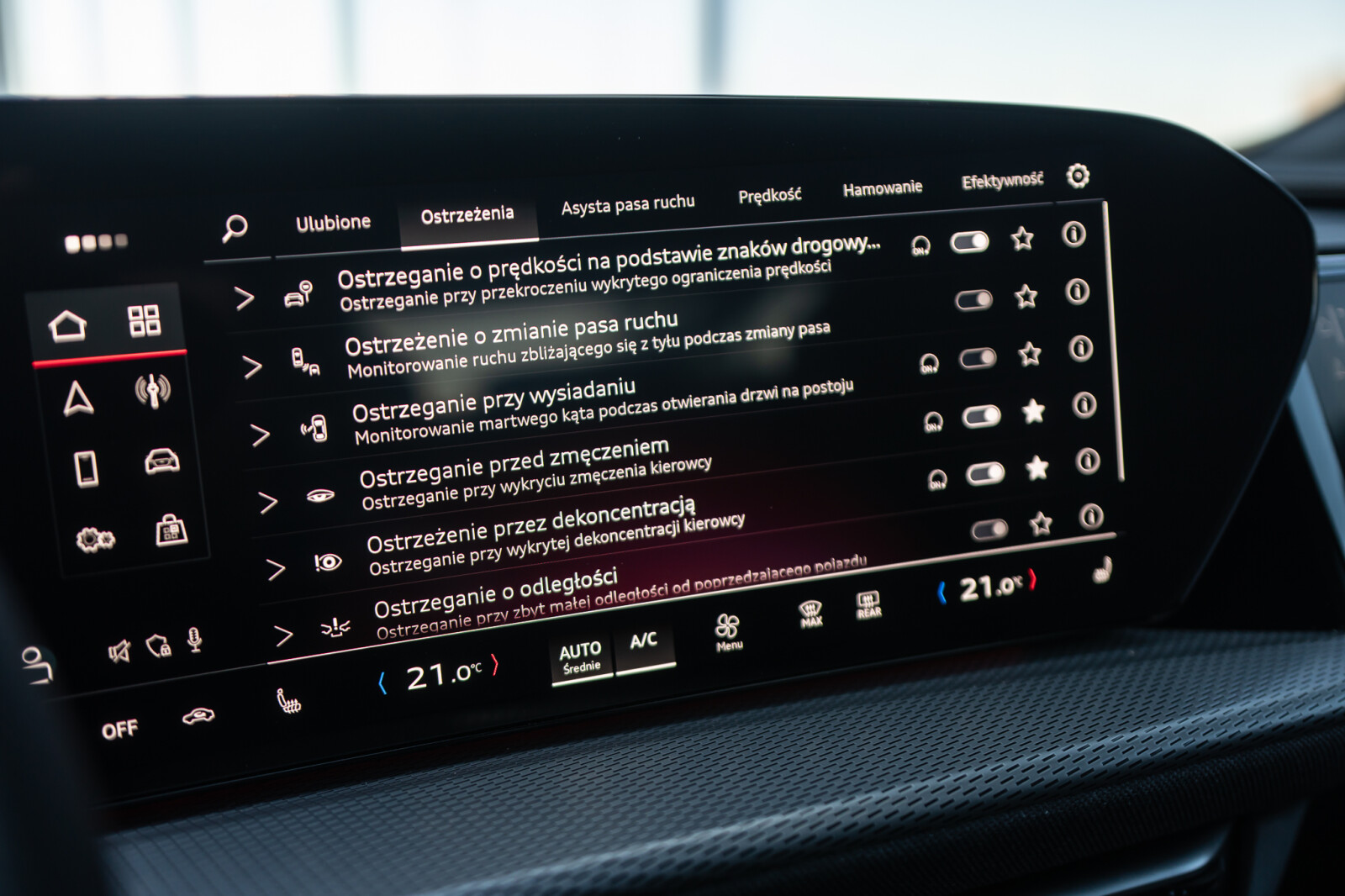 system ostrzegający przy zmianie pasa ruchu i wysiadaniu, asystent ruchu poprzecznego z tyłu i tylny asystent skrętu