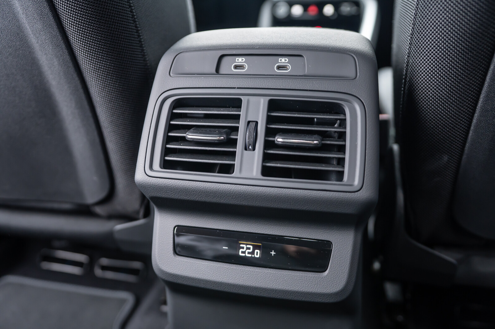 • górne elementy wnętrza pokryte tkaniną Kaskade¹, dolne elementy pokryte skórą ekologiczną: elementy dekoracyjne na tablicy rozdzielczej oraz w drzwiach i podłokietnikach z tkaniny Kaskade¹, kontrastowy szew na podłokietnikach w drzwiach, elementy na wysokości kolan na konsoli środkowej pokryte czarną skórą ekologiczną z kontrastowym szwem