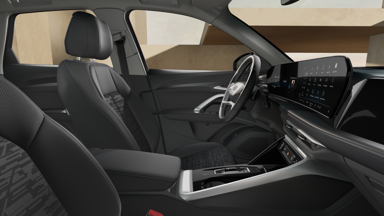 Wnętrze z siedzeniami standardowymi z tkaniny wkolorze czarnym