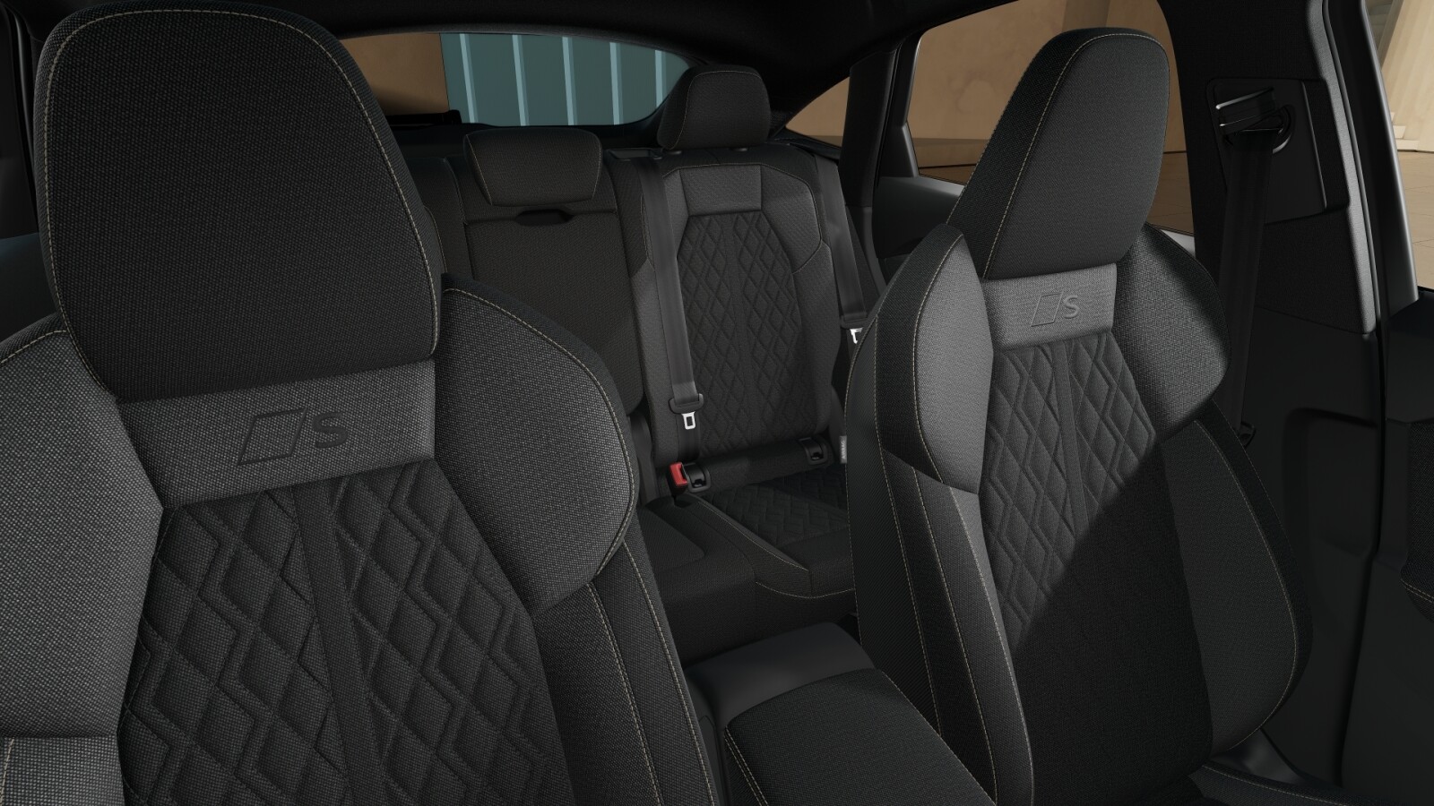 – Pakiet S line Interieur z siedzeniami sportowymi, tkanina w kolorze czarnym