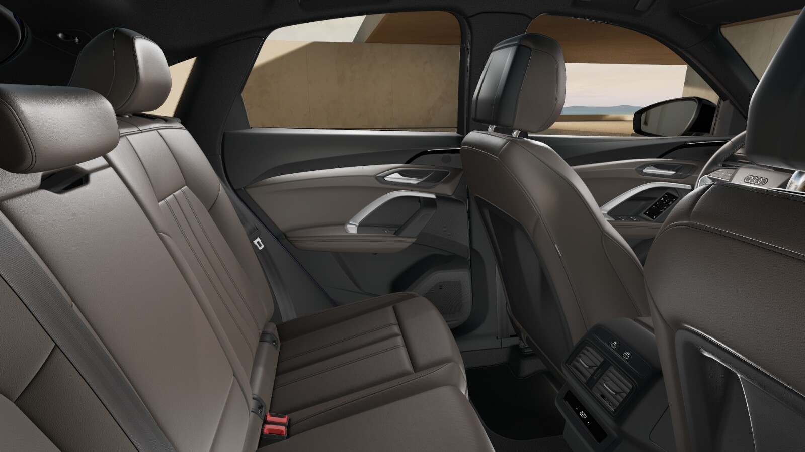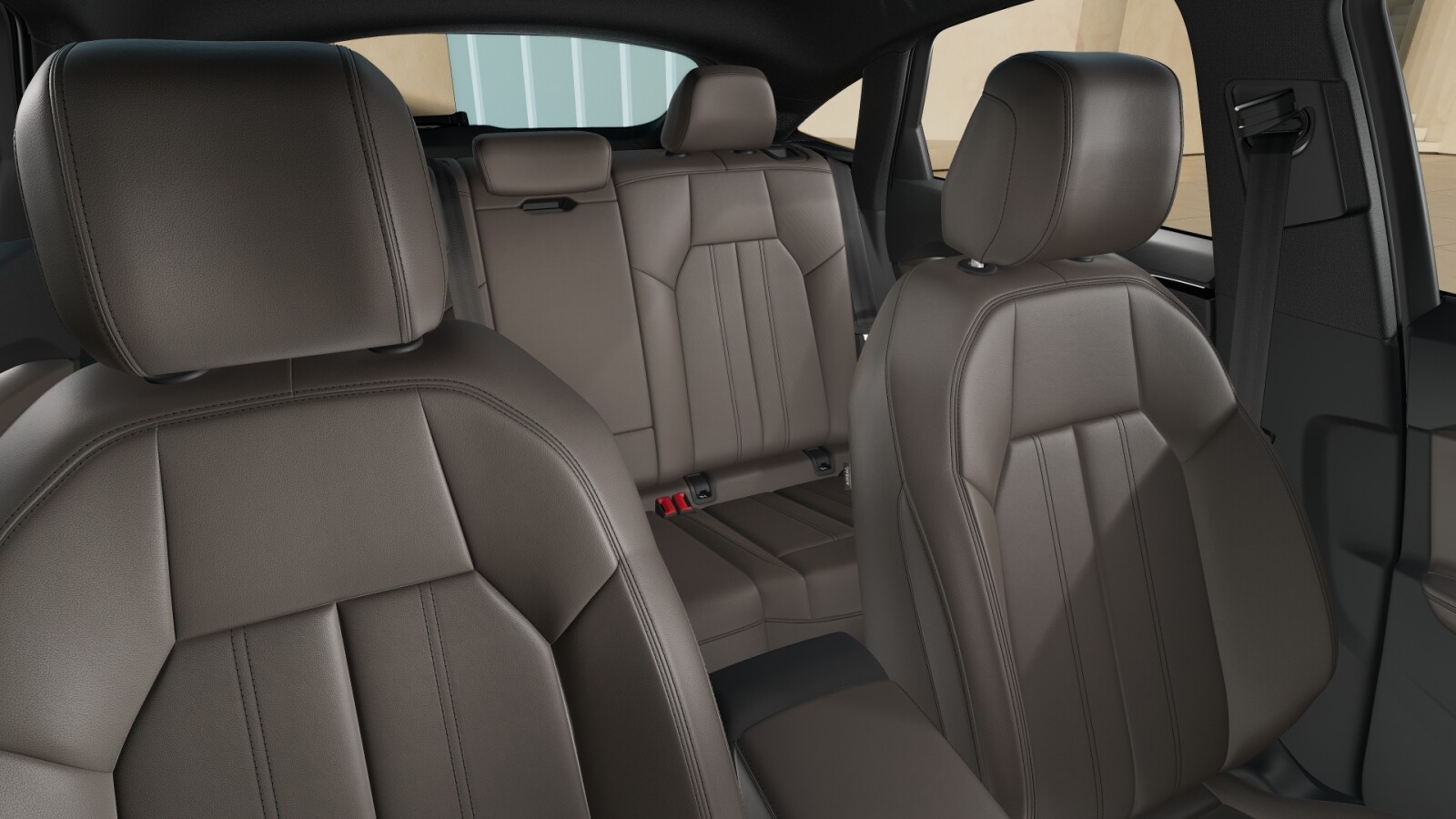• środkowe części siedzeń obszyte skórą w kolorze brązowym Murillo, boki siedzeń i zagłówki obszyte skórą ekologiczną brązową Murillo; kontrastowy szew (tapicerka tylnych siedzeń dopasowana optycznie do siedzeń przednich)