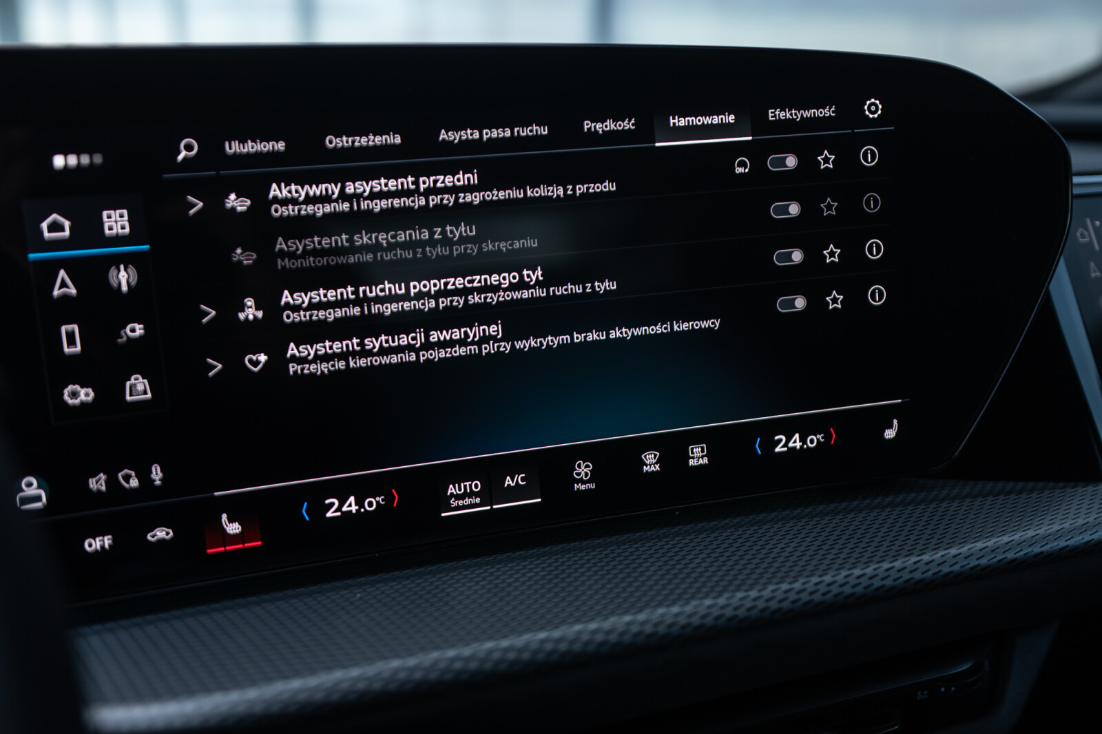 • system ostrzegający przy zmianie pasa ruchu i wysiadaniu, asystent ruchu poprzecznego z tyłu i tylny asystent skrętu