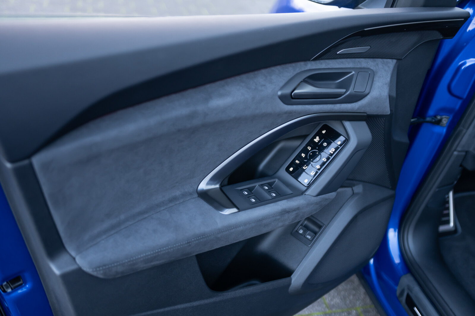 • górne i dolne elementy wnętrza pokryte mikrofibrą Dinamica¹: elementy dekoracyjne na tablicy rozdzielczej oraz w drzwiach i podłokietnikach z mikrofibry Dinamica¹ w kolorze czarnym, kontrastowy szew na podłokietnikach w drzwiach, elementy na wysokości kolan na konsoli środkowej pokryte czarną mikrofibrą Dinamica¹
