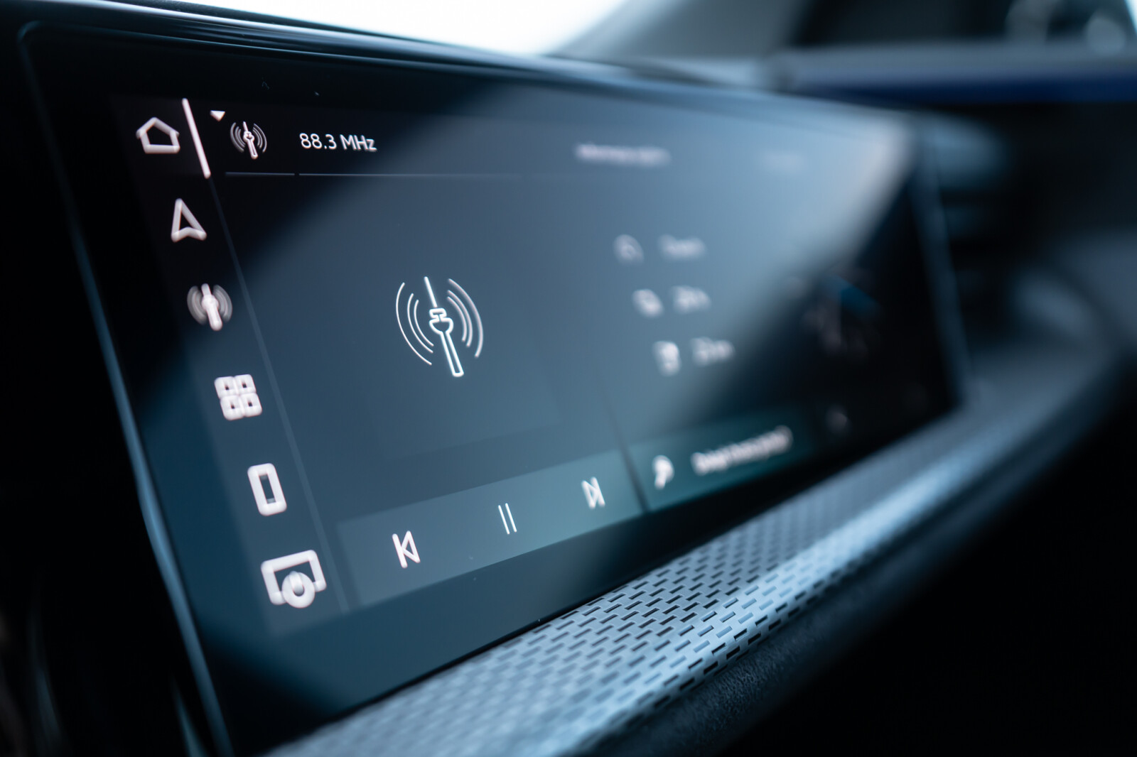 • kontrastowe płaszczyzny i przyciski obsługowe na tablicy rozdzielczej, w poszyciu przednich drzwi i na konsoli środkowej, czarne z połyskiem