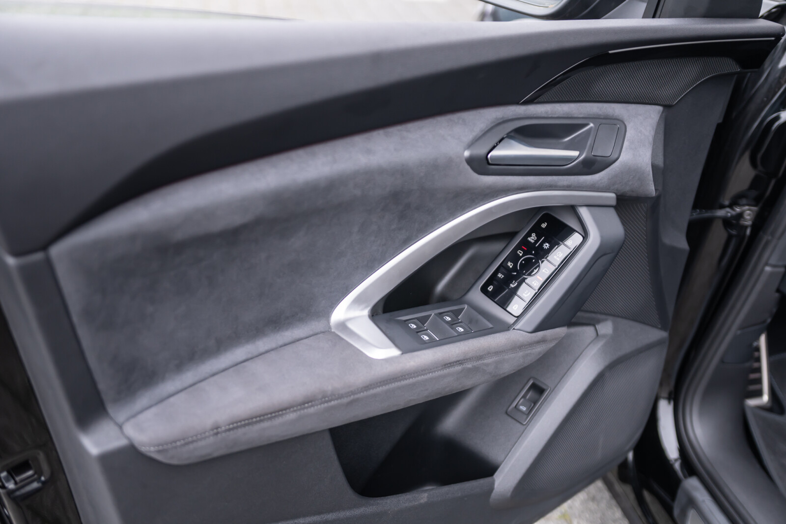 • górne i dolne elementy wnętrza pokryte mikrofibrą Dinamica¹: elementy dekoracyjne na tablicy rozdzielczej oraz w drzwiach i podłokietnikach z mikrofibry Dinamica¹ w kolorze czarnym, kontrastowy szew na podłokietnikach w drzwiach, elementy na wysokości kolan na konsoli środkowej pokryte czarną mikrofibrą Dinamica¹