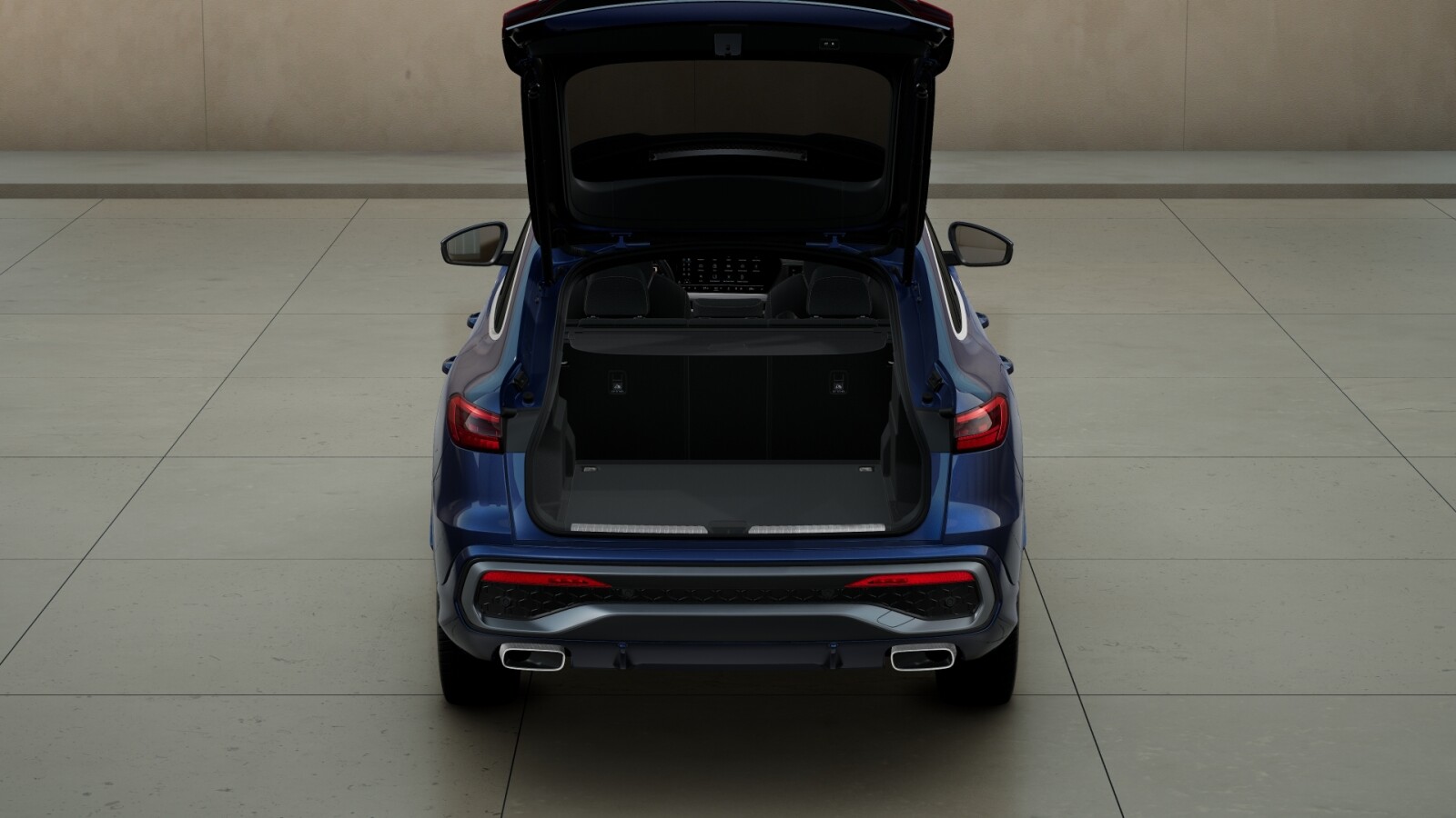 • przednie siedzenia sportowe z manualnie wysuwanym podparciem pod uda, wizualnie zintegrowanymi zagłówkami i wyprofilowanymi bokami, poprawiającymi stabilność na zakrętach
