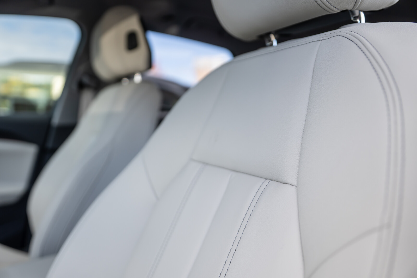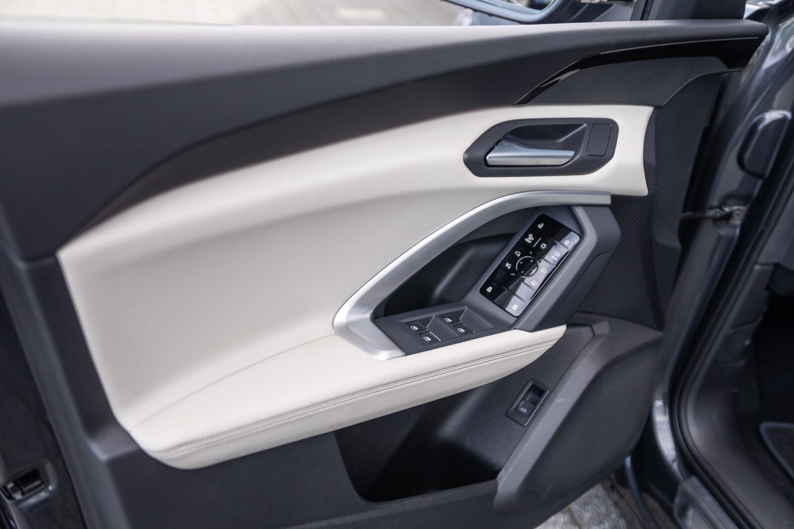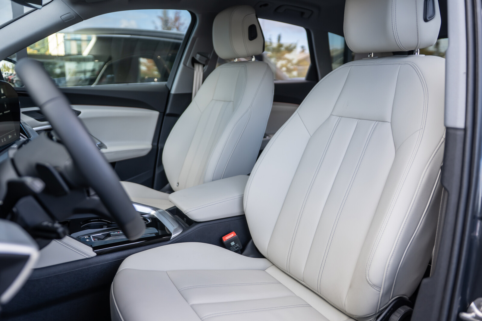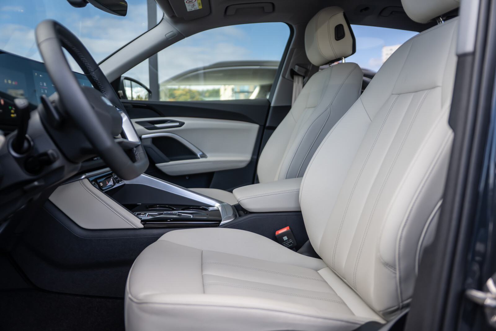 • środkowe części siedzeń obszyte skórą w kolorze beżowym Perlmutt, boki siedzeń i zagłówki obszyte skórą ekologiczną beżową Perlmutt; kontrastowy szew (tapicerka tylnych siedzeń dopasowana optycznie do siedzeń przednich)