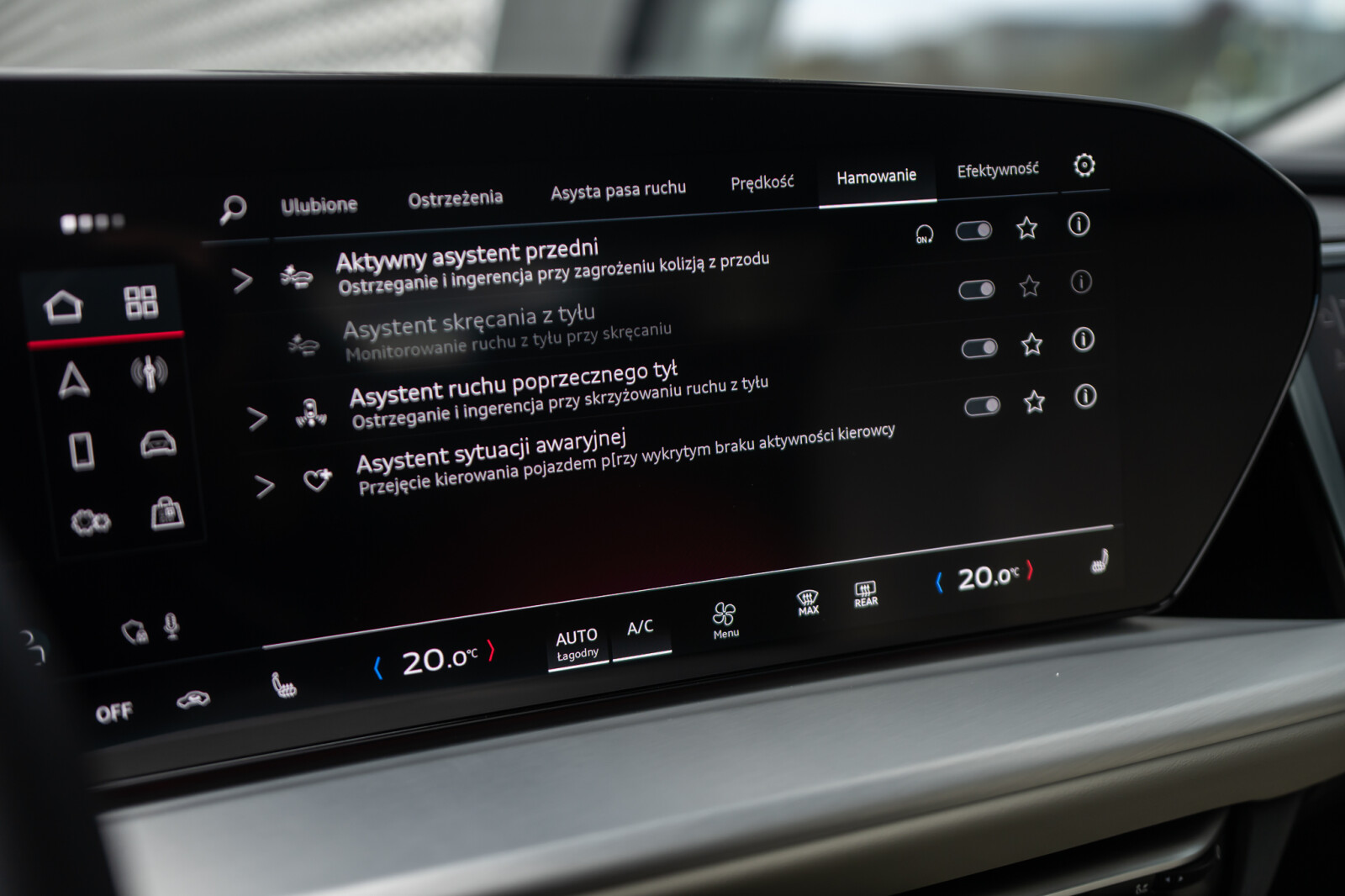 • system ostrzegający przy zmianie pasa ruchu i wysiadaniu, asystent ruchu poprzecznego z tyłu i tylny asystent skrętu