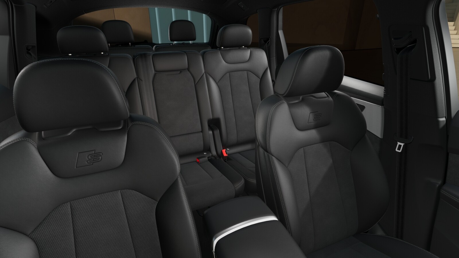 • tapicerka z kombinacji mikrofibry Dinamica Frequenz/skóry w kolorze czarnym z kontrastowym szwem i wytłoczonym logo S w oparciach przednich siedzeń