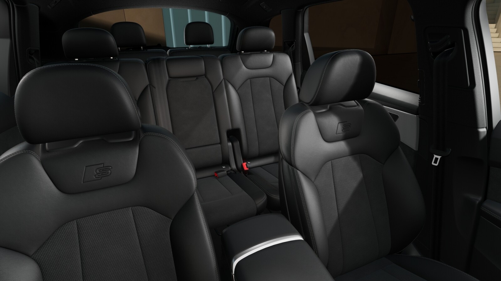 • tapicerka z kombinacji mikrofibry Dinamica Frequenz/skóry w kolorze czarnym z kontrastowym szwem i wytłoczonym logo S w oparciach przednich siedzeń