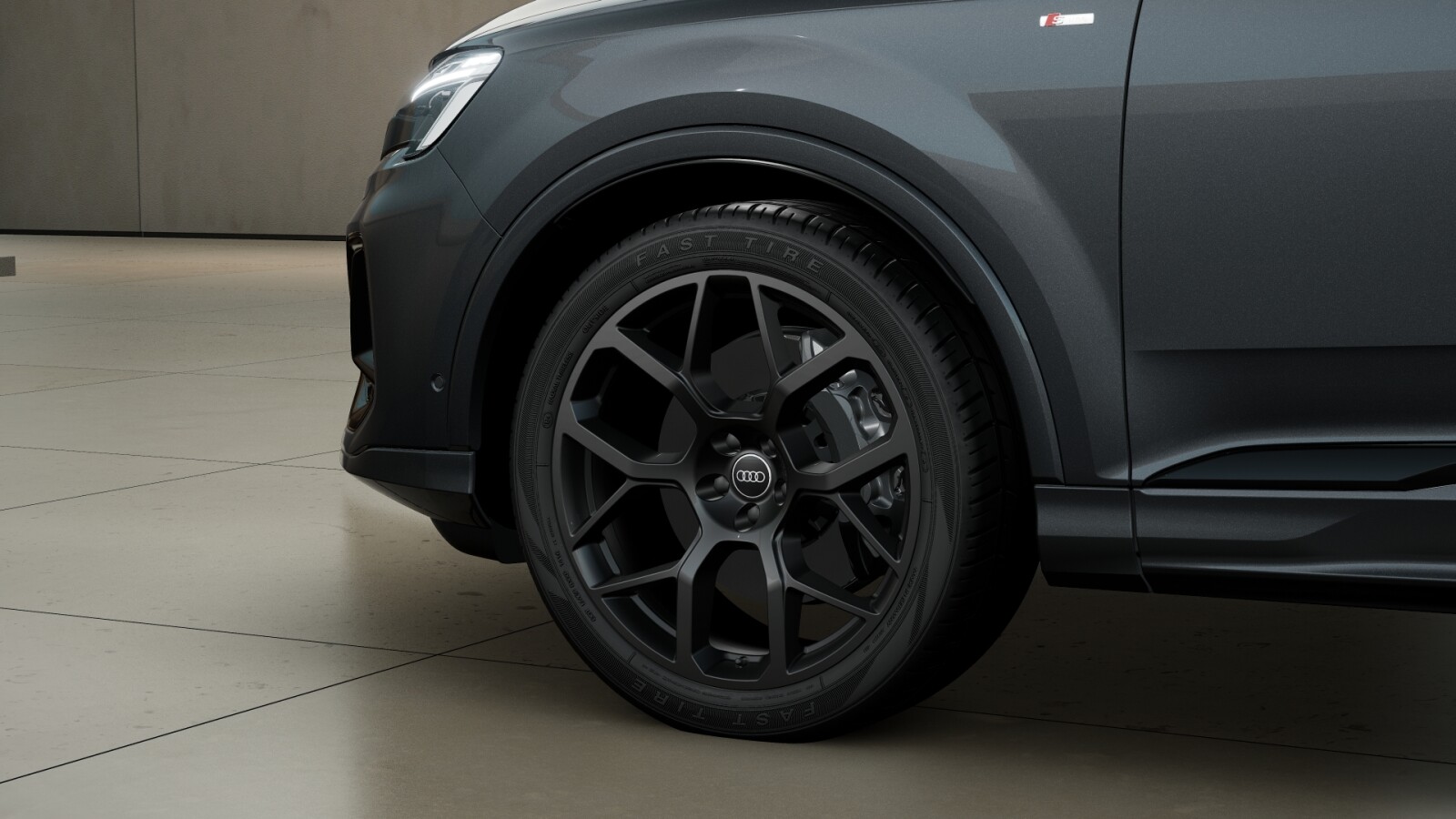 • Pierścienie Audi z przodu i z tyłu w kolorze antracytowym