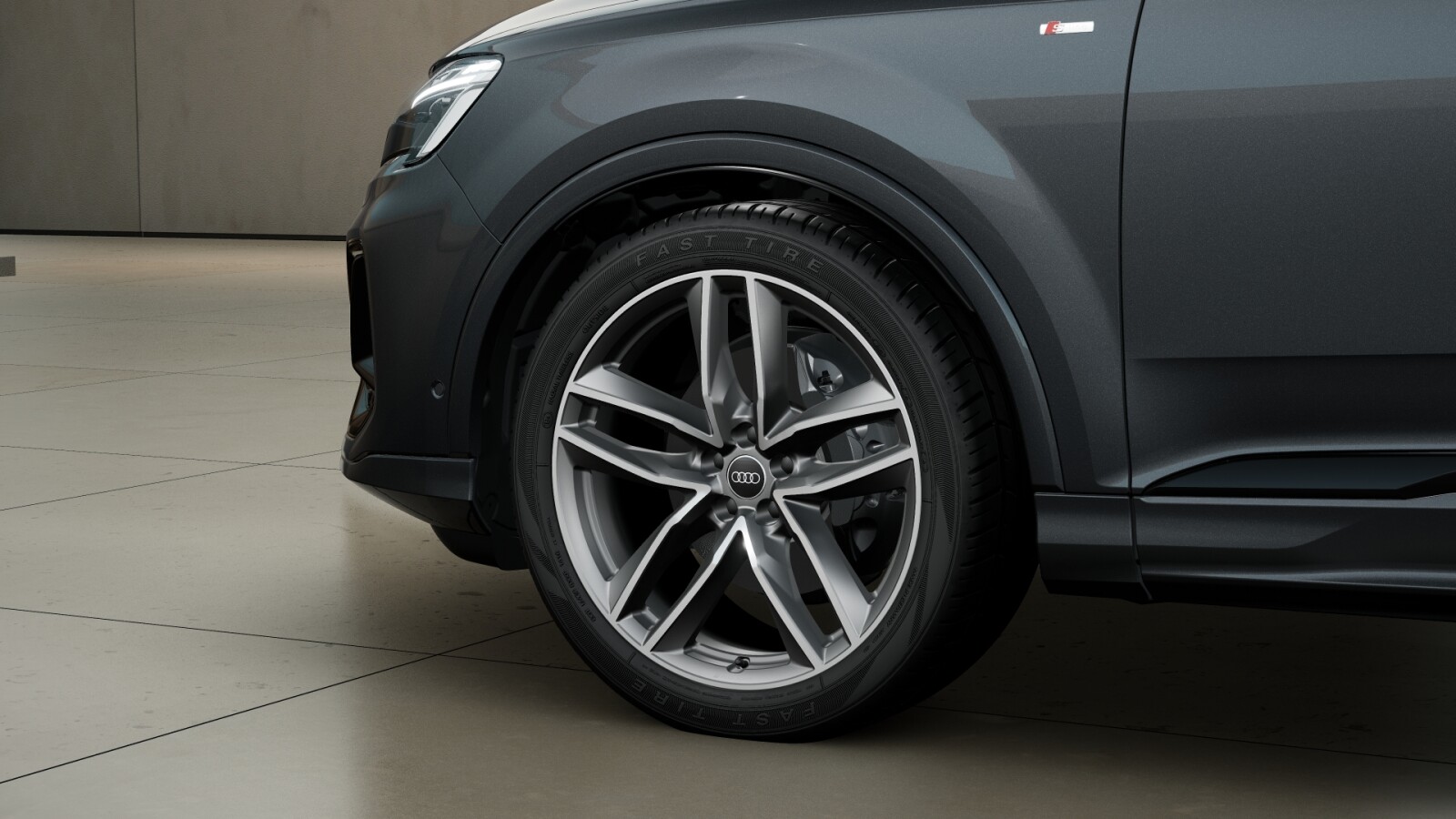 • Obręcze kół ze stopu metali lekkich Audi Sport 9,5Jx21″, 5 – ramienne, w tonacji matowego tytanu, częściowo polerowane z oponami 285/40 R21