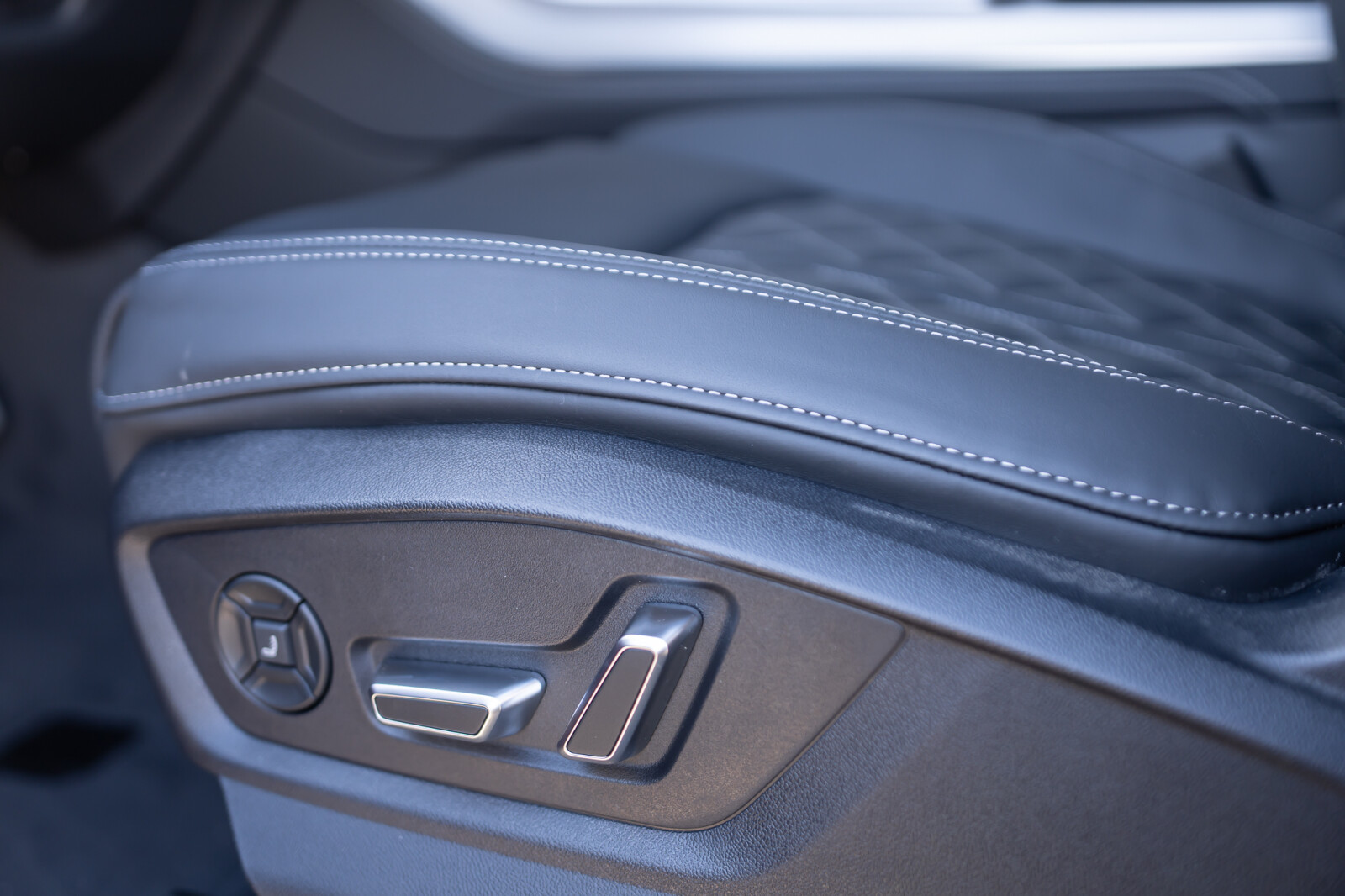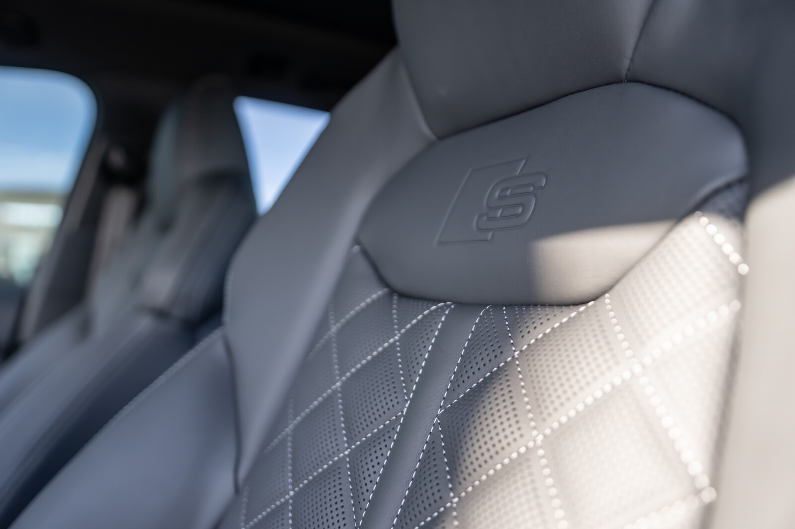 • tapicerka z kombinacji mikrofibry Dinamica Frequenz/skóry w kolorze czarnym z kontrastowym szwem i wytłoczonym logo S w oparciach przednich siedzeń