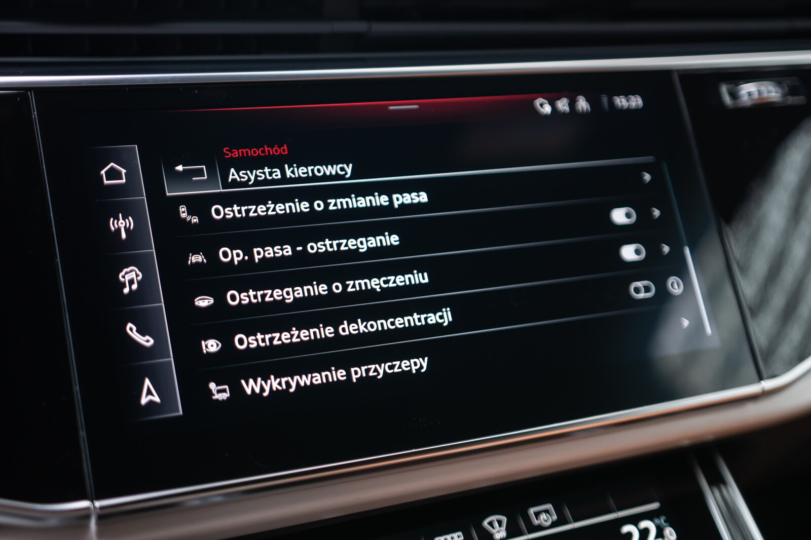 • Asystent zmiany pasa z systemem ostrzegania o zjeździe i ostrzeżeniem o ruchu z tyłu