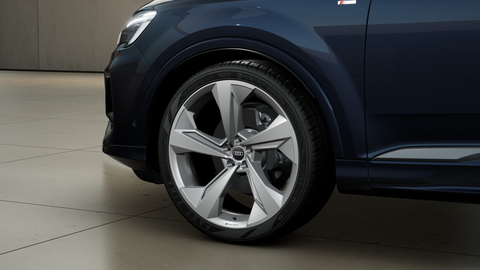 – Obręcze kół ze stopu metali lekkich Audi Sport 10Jx22″, 5 – ramienne Edge, platynowoszare matowe, z
