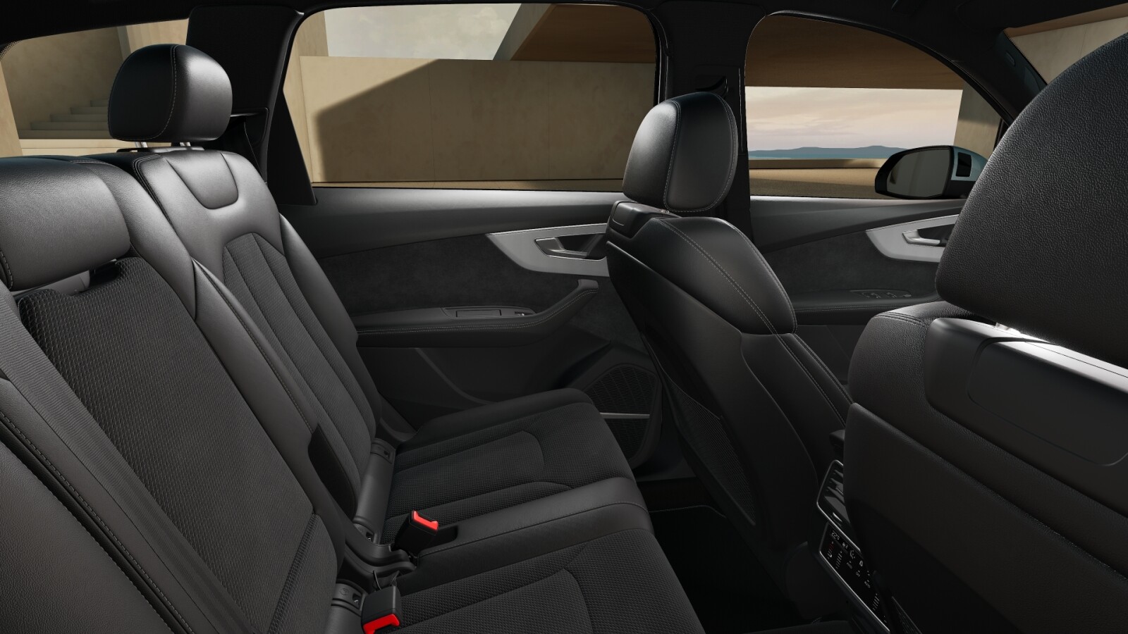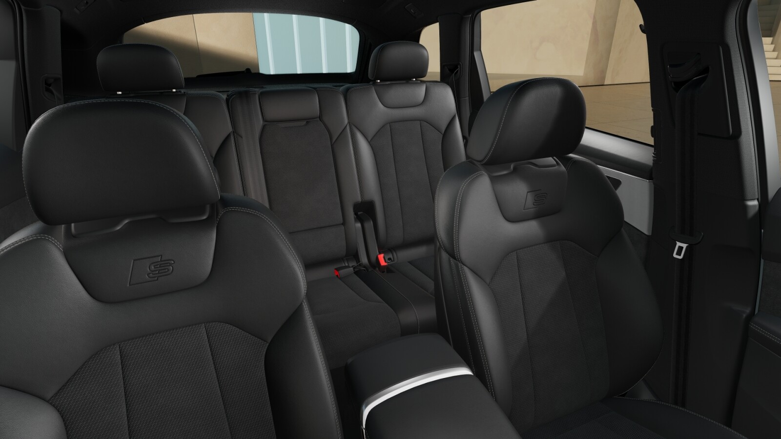 • tapicerka z kombinacji mikrofibry Dinamica Frequenz/skóry w kolorze czarnym z kontrastowym szwem i wytłoczonym logo S w oparciach przednich siedzeń
