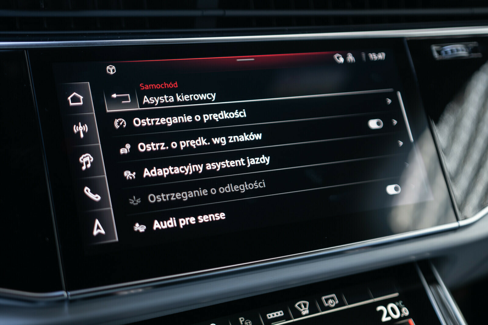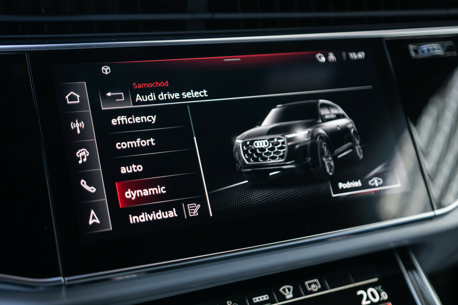 – Przyciski obsługowe czarne z połyskiem, z haptycznym feedbackiem i elementami w optyce aluminium